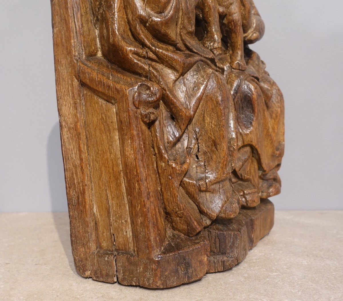 This very beautiful oak statuary group dating from the 16th century represents Saint Anne, the Virgin Mary and the Child Jesus. This Christian iconographic theme, bringing together the three generations, the grandmother, the mother and the Child Jesus, was very popular in the West.