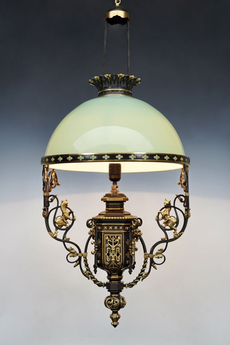 The very architectural and precise design of this lantern evokes the creations of Eugène Viollet-le-Duc (1814-1879), who was not only a renowned theorician, but above all an accomplished architect, whose genius lay in his acute observation of medieval buildings in view of their restoration, as well as the continuation of the Gothic style in architecture and decorative arts.