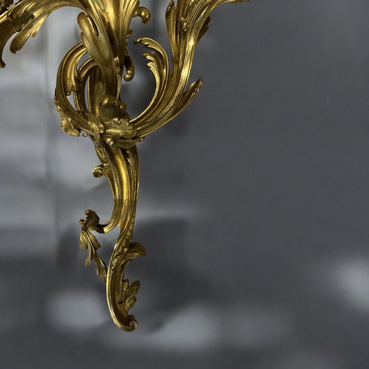 Exceptional pair of appliques (extremely large) in finely chiseled and mercury-gilded bronze. France. Late 18th-early 19th century. Dimensions: HxWxD: 80x54x30 cm.