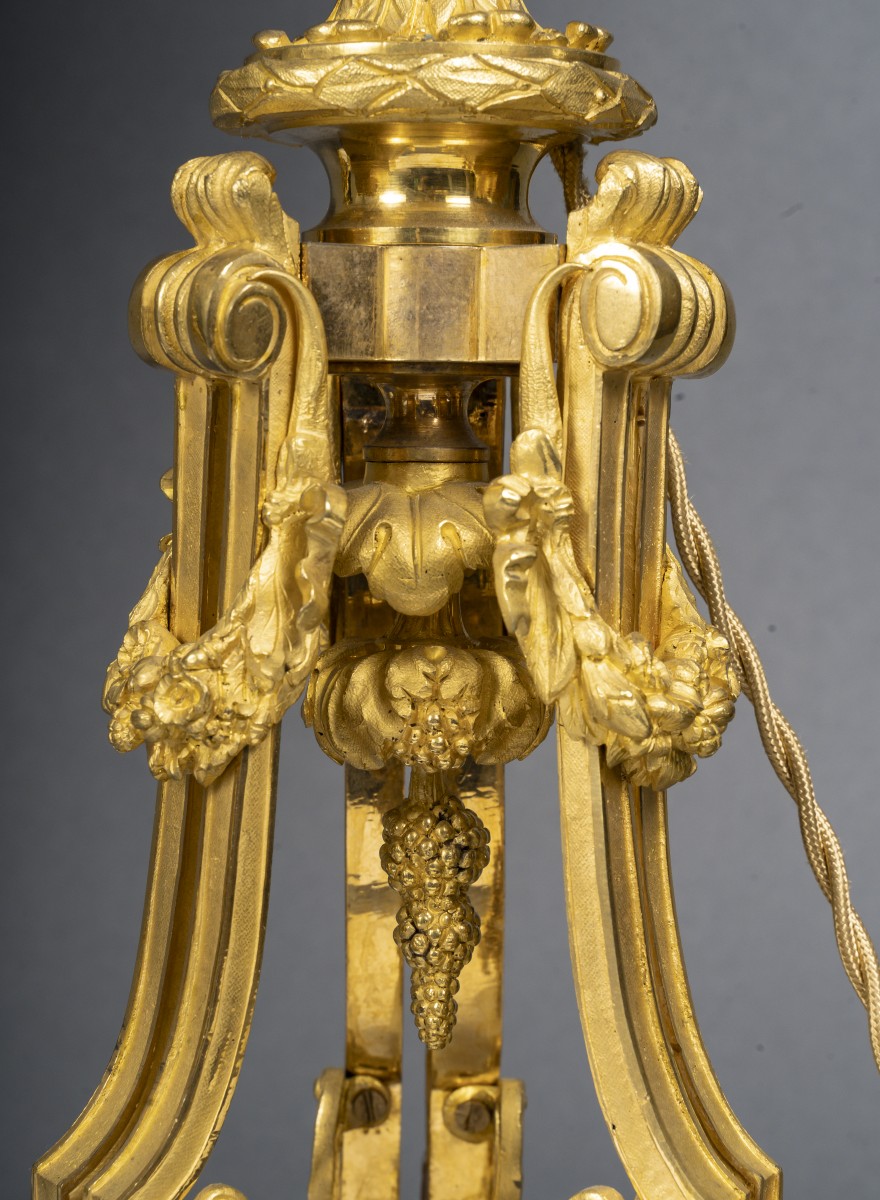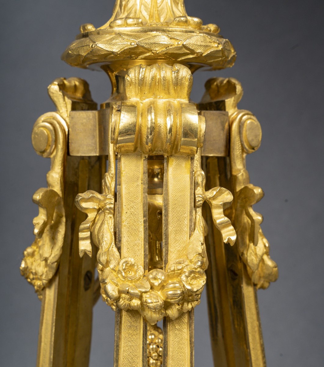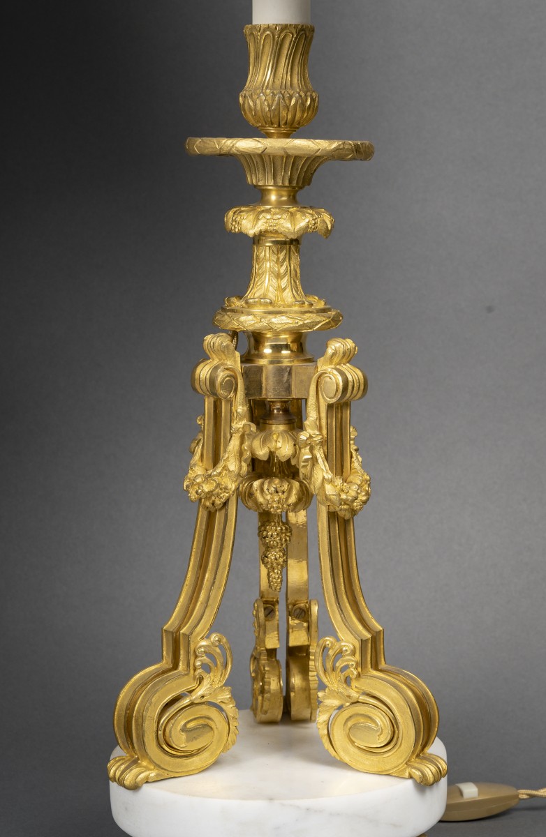 Pair of gilt bronze lamps with Carrara marble bases from the late 19th century.