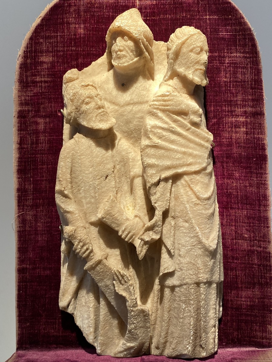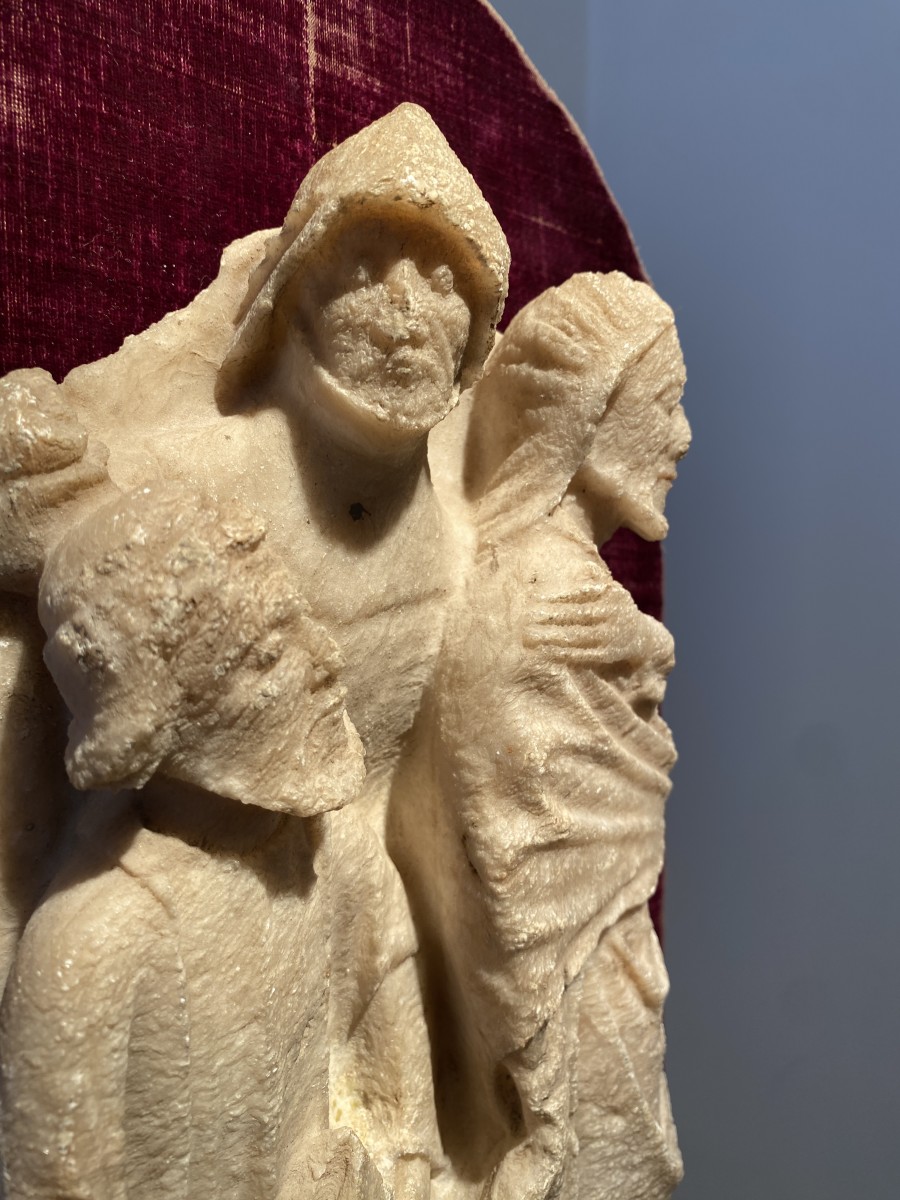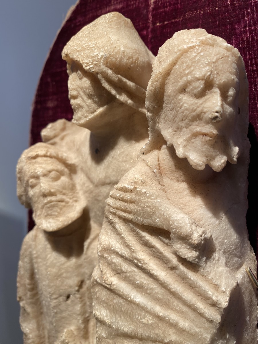 Bibliography: in his book ‘English Medieval Alabasters’ Francis Cheetham gives some examples of Betrayal scenes in the Victoria & Albert Museum (illustrations 151-158 on p224-231). The one depicted on p.229 (ill.156) is the one closest to our fragment