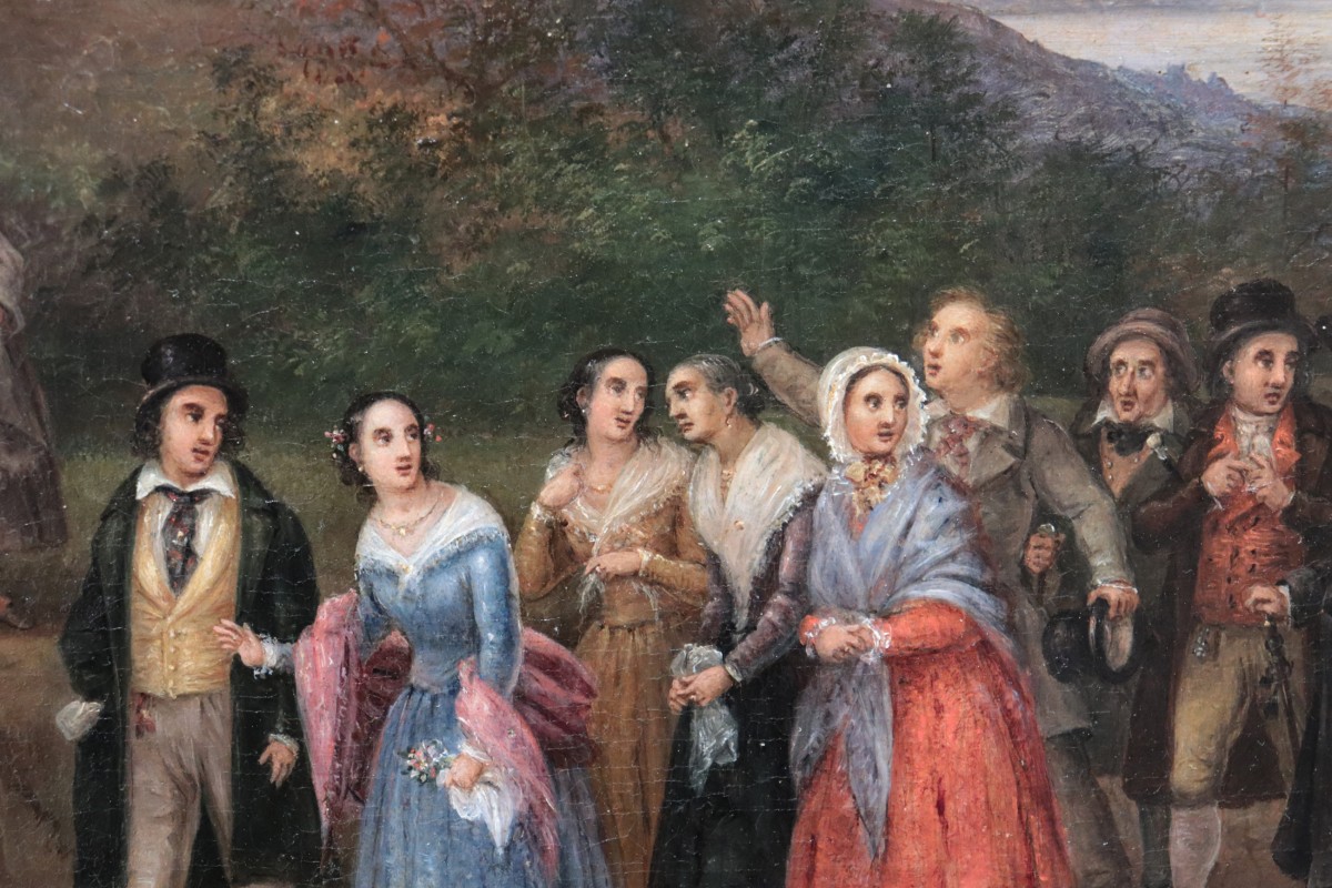 Canella Carlo (Verona 1800-Milan 1879) - Pair of Landscapes Canella Carlo (Verona 1800- Milan 1879) Painting Wedding: 74x54cm frame 102x82cm signed lower left Painting Landscape with River: 71x56cm 99.5 x 85cm unsigned Carlo Canella was born on 6 April 1800 in Verona. Introduced to painting by his older brother Giuseppe, he studied at the Academy of Verona and made his debut in 1829 at the Milan Exhibition with a Portrait. In the 1837 Fine Arts Exhibition album, he was judged as follows: ‘Although he does not have all the inventive flair of his brother Giuseppe, he knows how to conduct his genre paintings of views with much study of reality and splendour of colour’. Numerous works also appeared in the Verona exhibitions. Noteworthy among his works are the portrait of Canella in his studio, mistakenly identified by biographers and cataloguers of the time as a self-portrait of Giuseppe, and a work belonging to Marquis Zanoletti depicting a kitchen interior with a scene reminiscent of Induna, as well as the painting depicting the interior of Milan Cathedral, in which he signs himself 'Canella minore' and which the Museo di Castel Vecchio in Verona was about to purchase from its owner, Emma Wollisch of Vienna. He died in Milan in 1879.