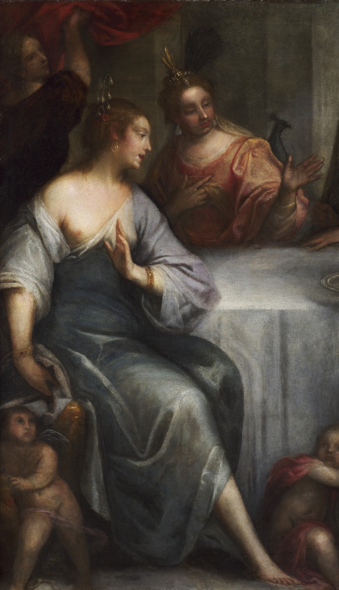 Alongside this episode, the painter had created another painting depicting the Judgement of Paris, which should be considered a companion piece, or rather, a continuation of the story. (See Carlo Ridolfi's commentary below.)
