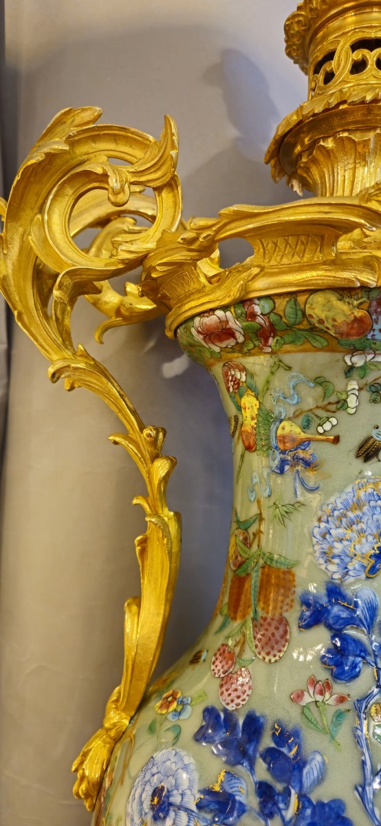 This combination illustrates the 19th-century taste for “extreme orientalism” and the art of mounted porcelains, pairing Chinese export ceramics with French bronzes in a spectacular decorative synthesis.