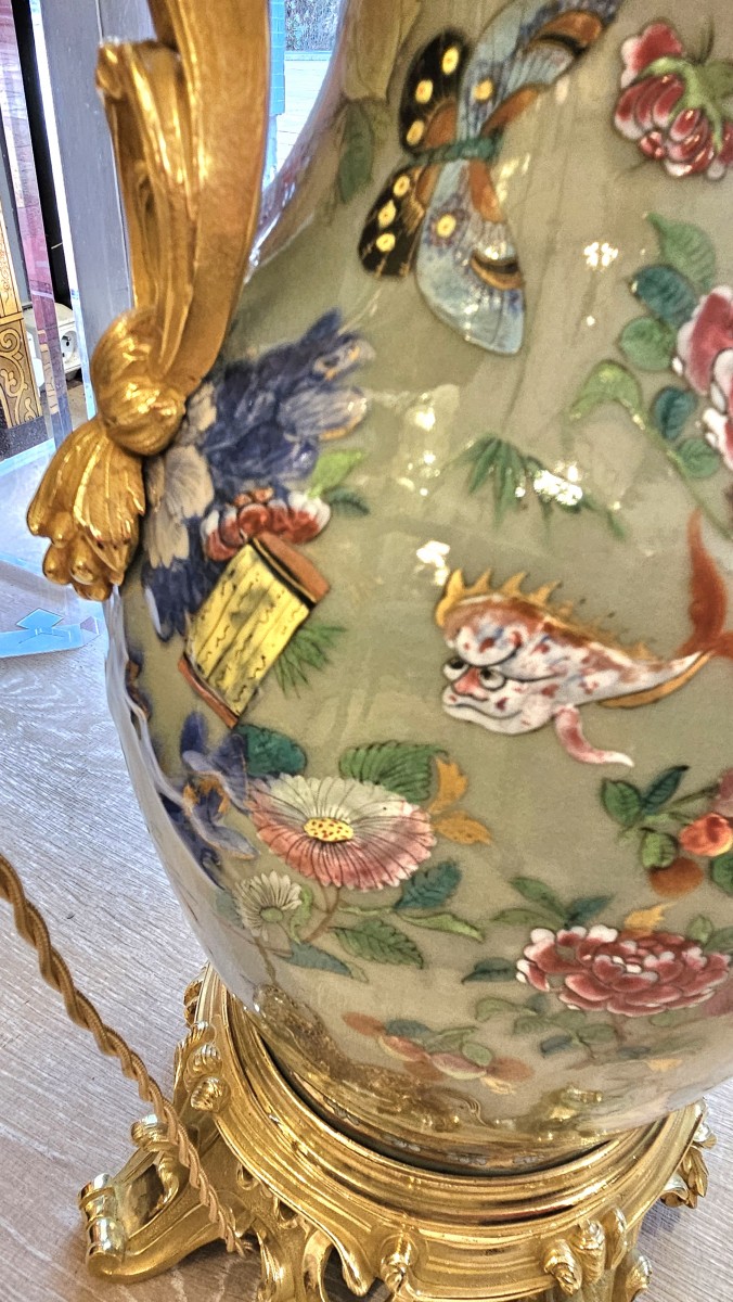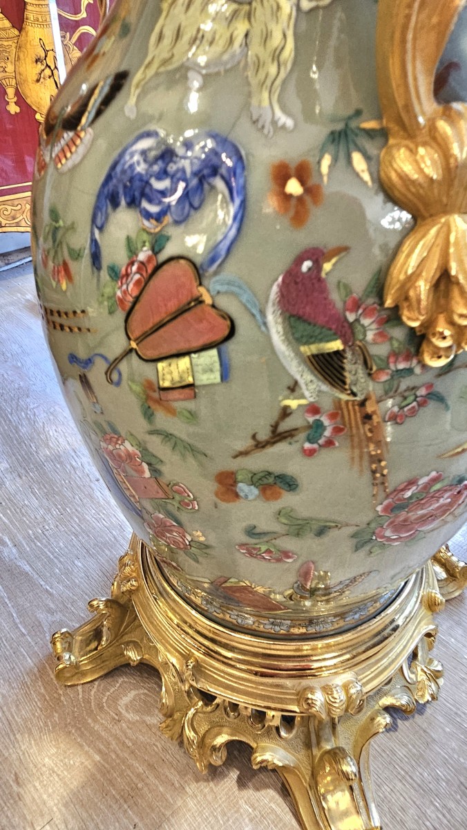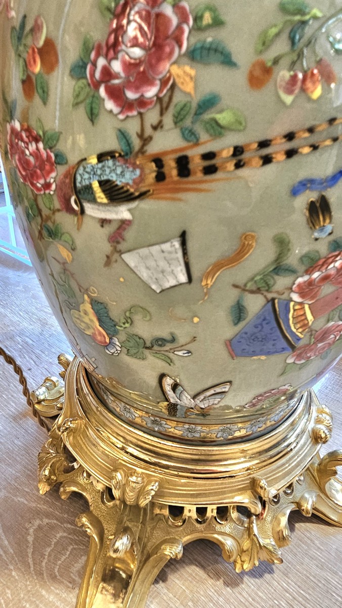 Important Chinese porcelain vase, Canton or Nanking, with polychrome and gilt decoration, mounted in gilt bronze, 19th century