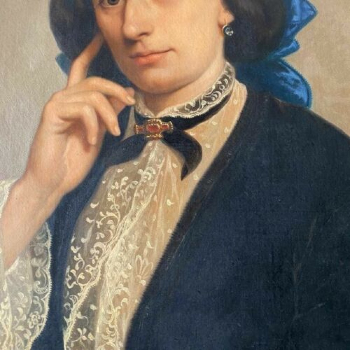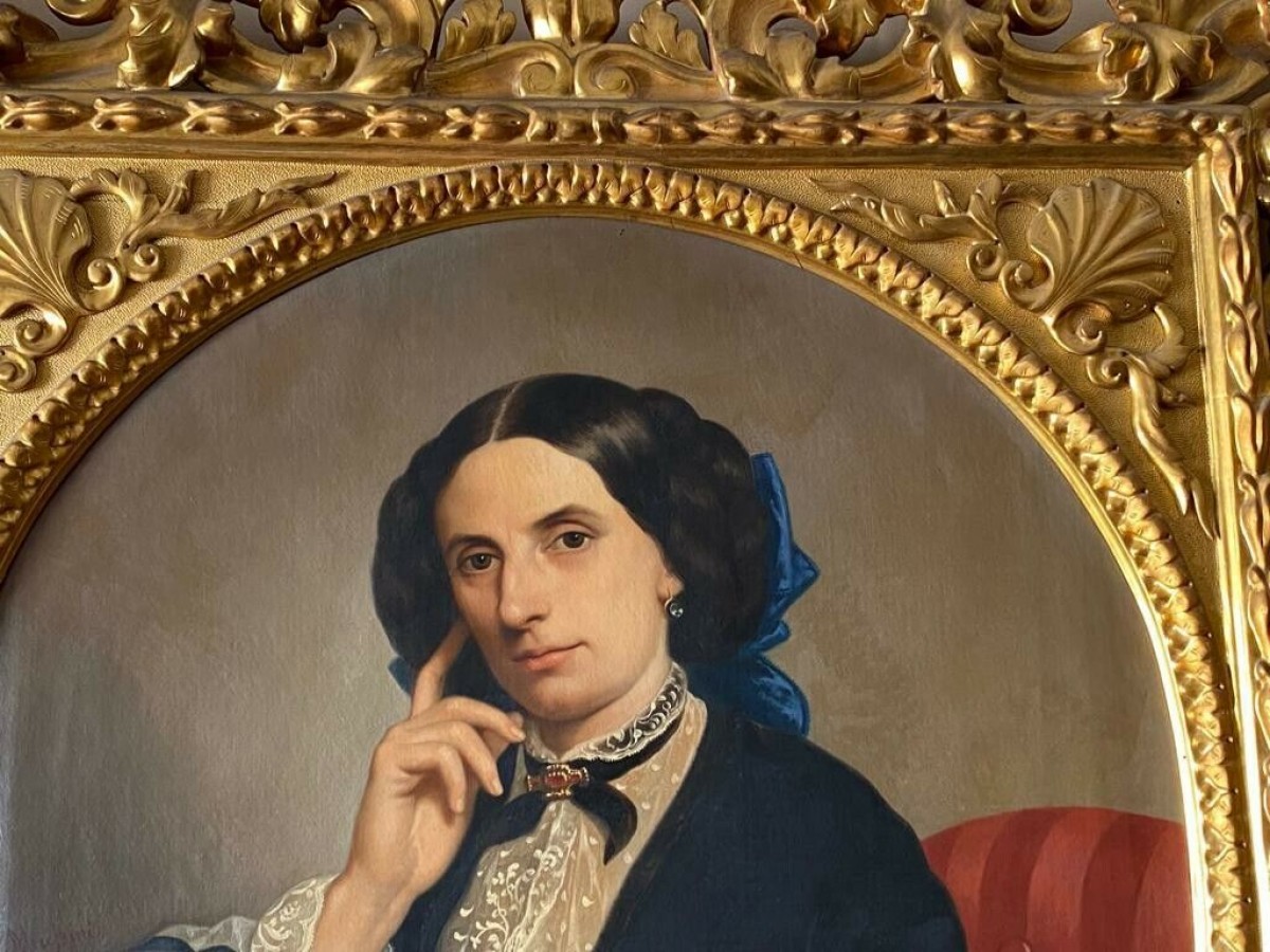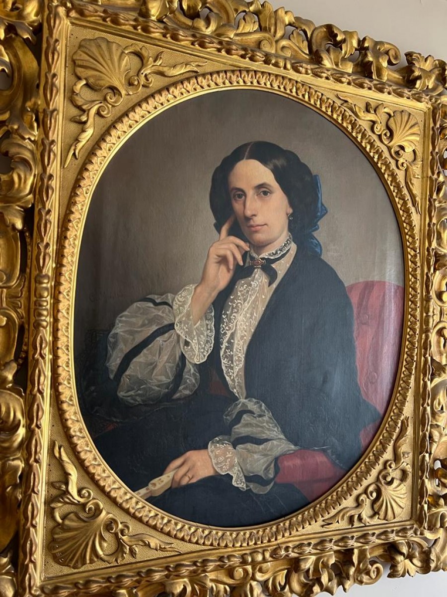 Oil on canvas, portrait of a woman, 19th century, signed C. Mussini, 1858.