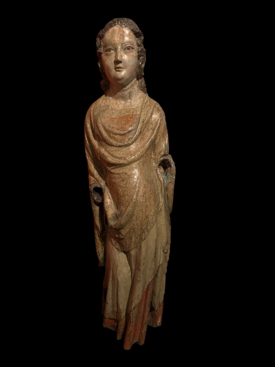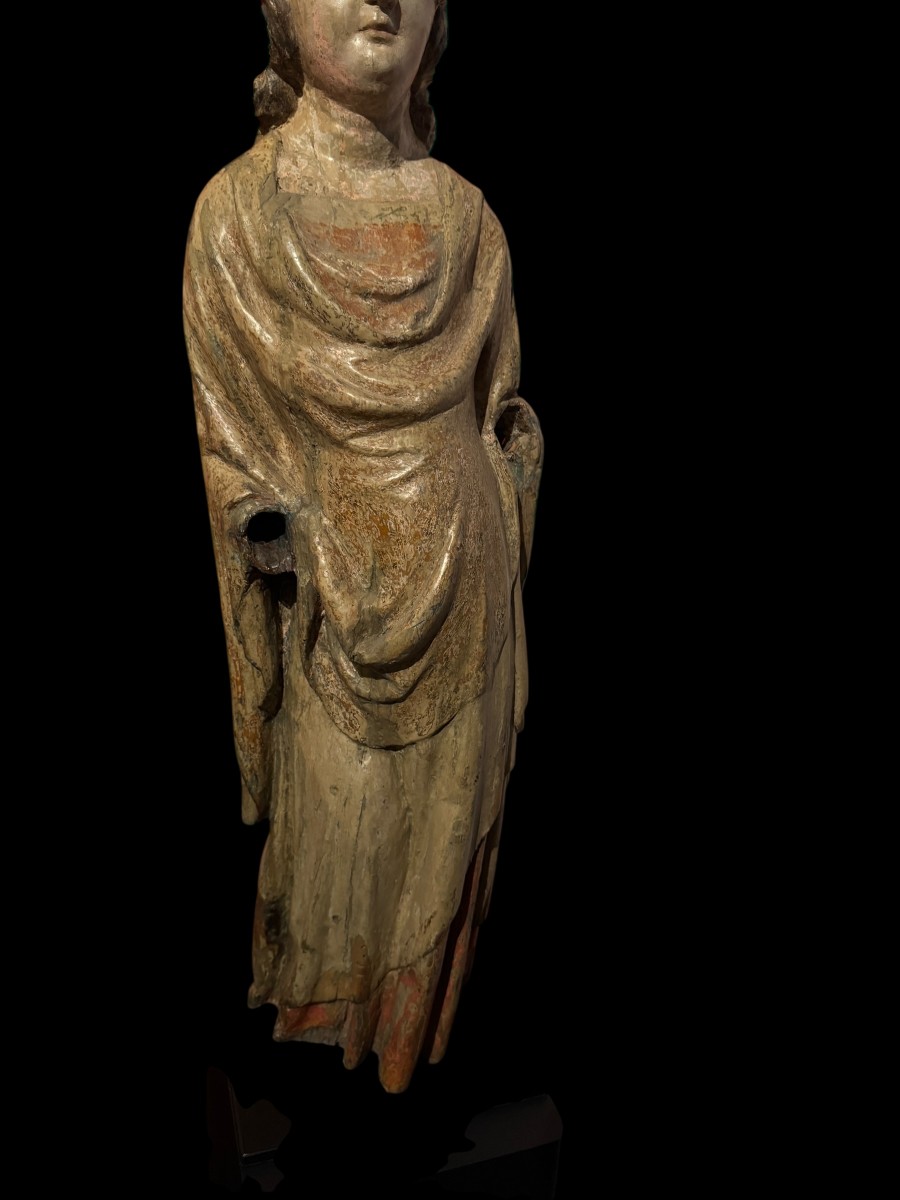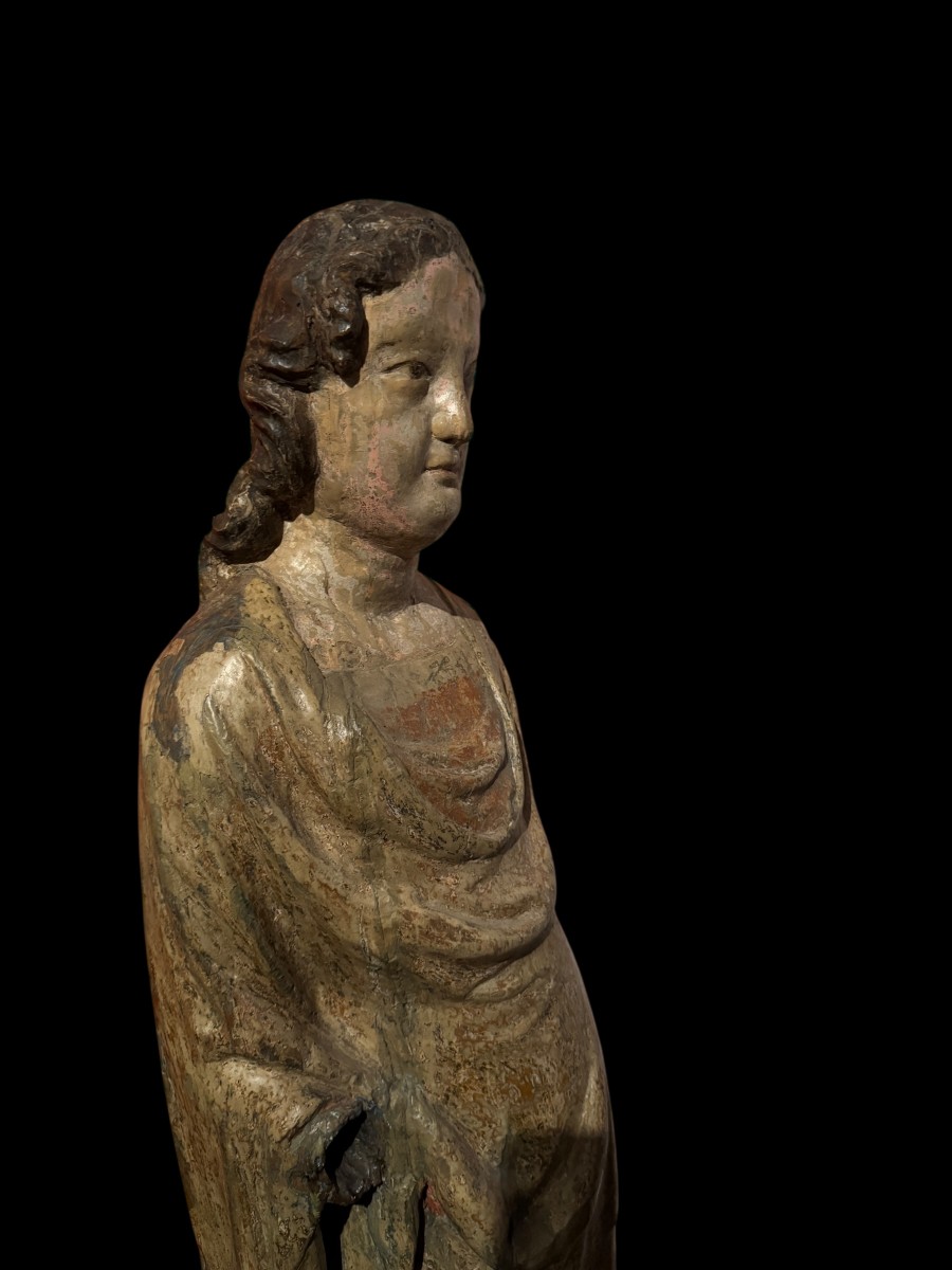 The statue probably originates from the Cologne region, where high-quality wooden sculptures were produced at that time.