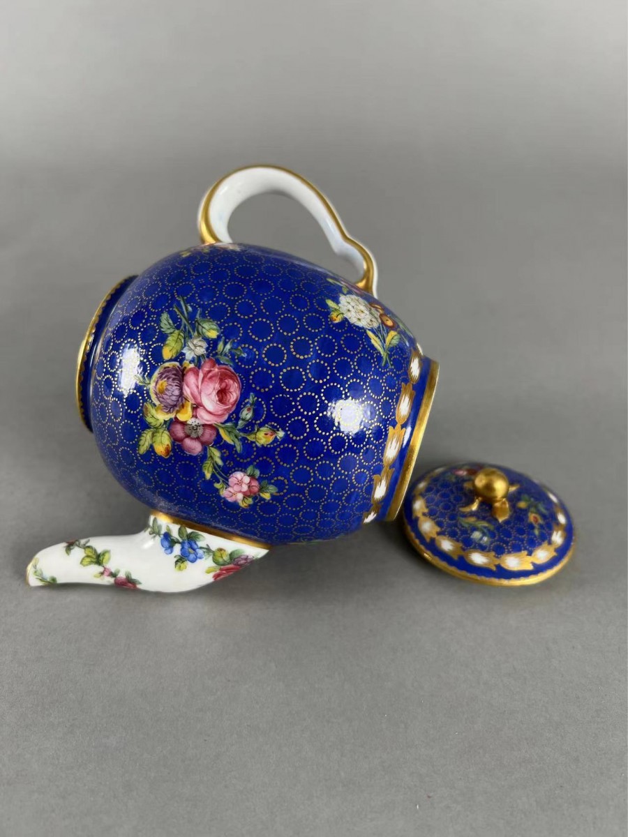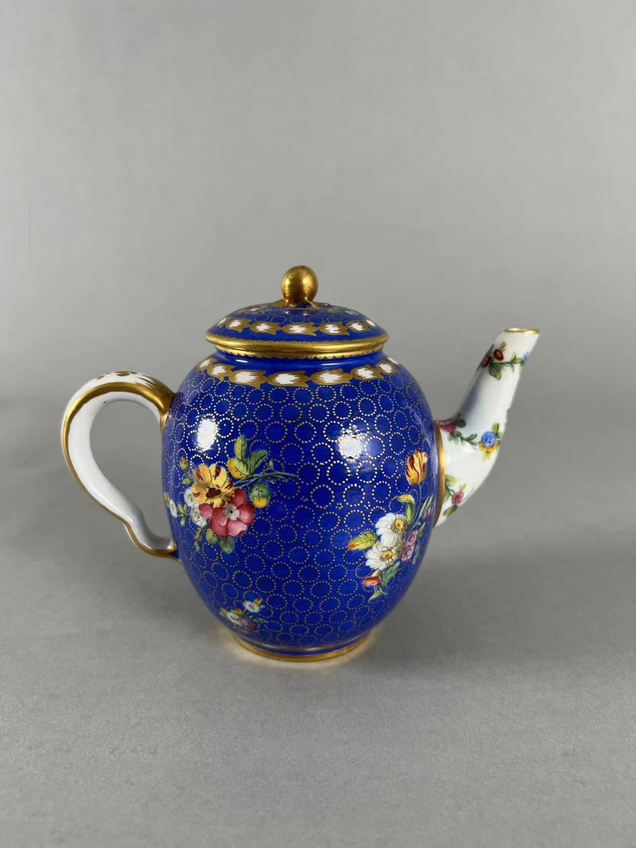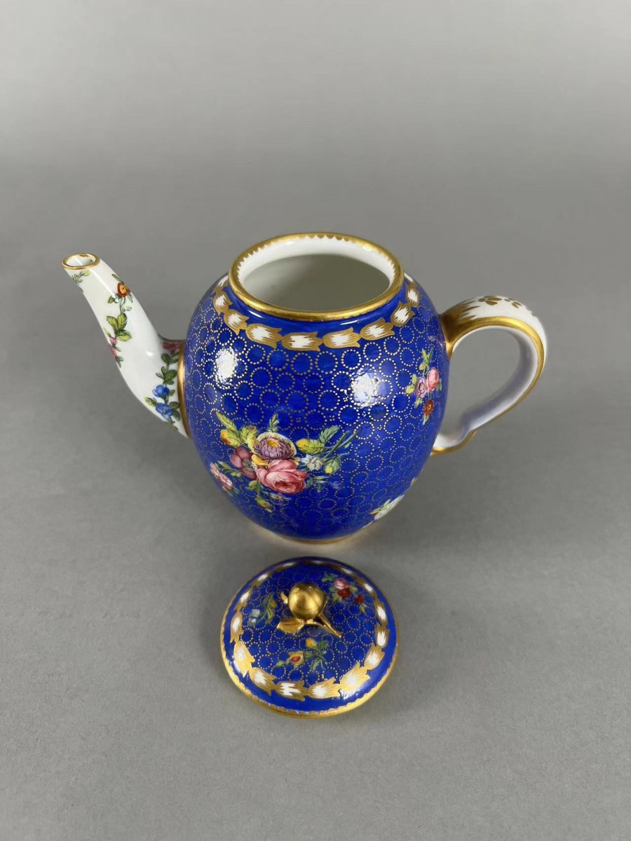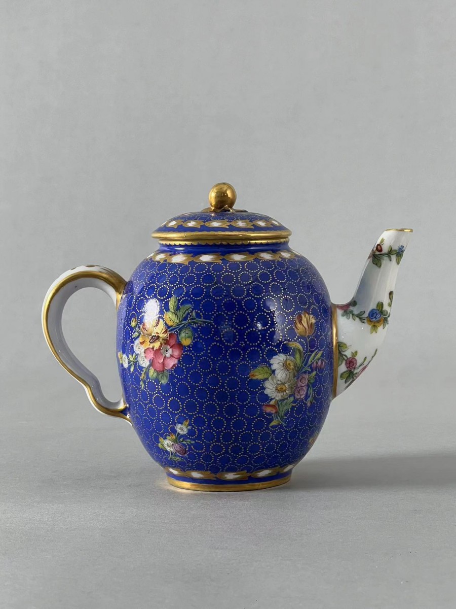 The teapot is in fine condition, with minor gilt wear typical of 18th-century use, showcasing the elegance of royal French porcelain craftsmanship.