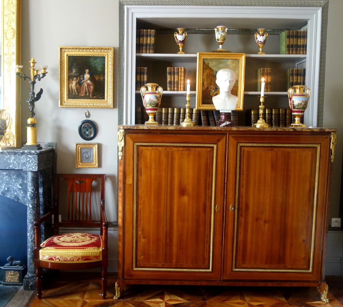 In excellent condition, no distorsion. Gilt is fresh and bright. We offer the bobeches that have been brought afterwards.