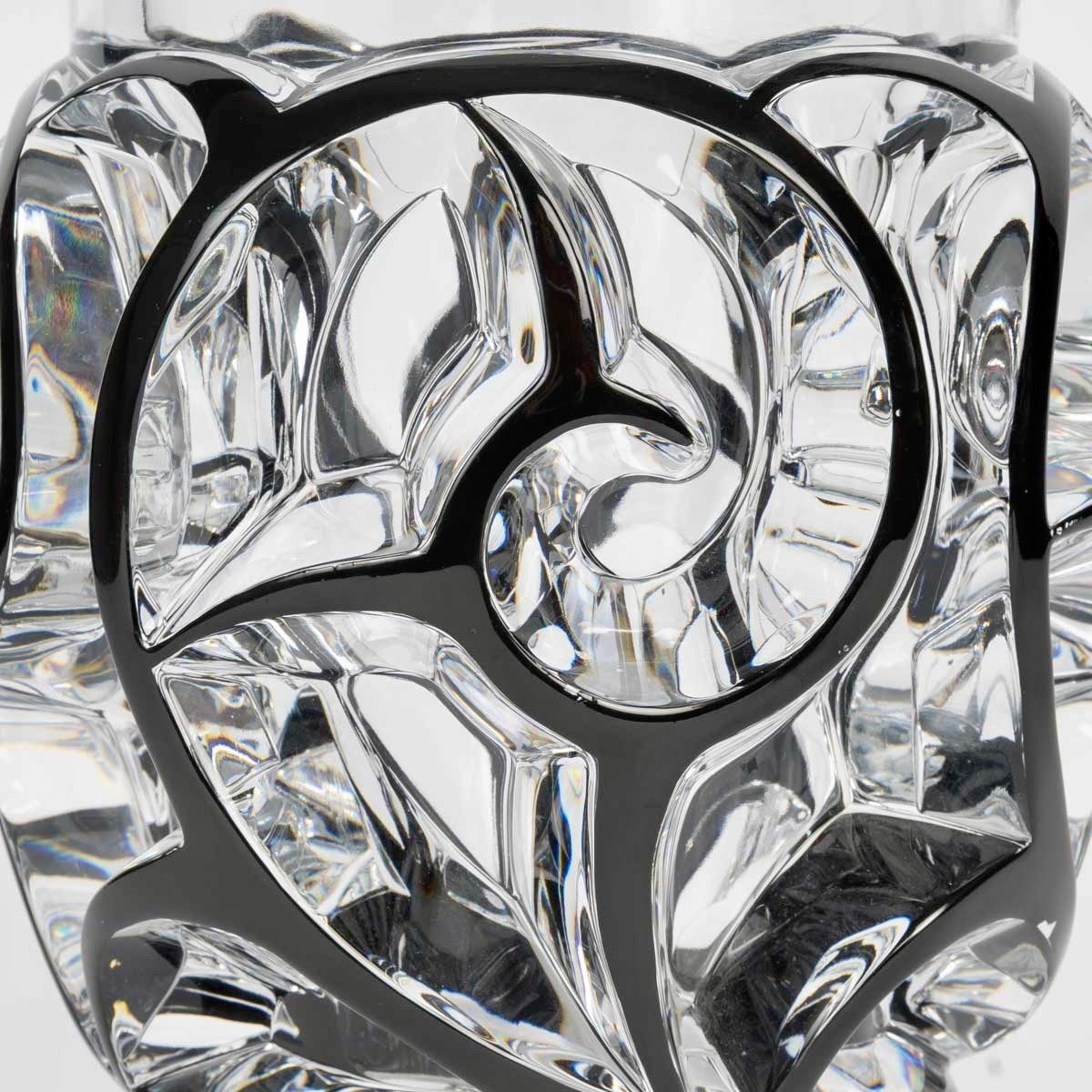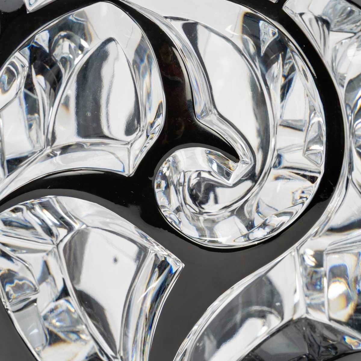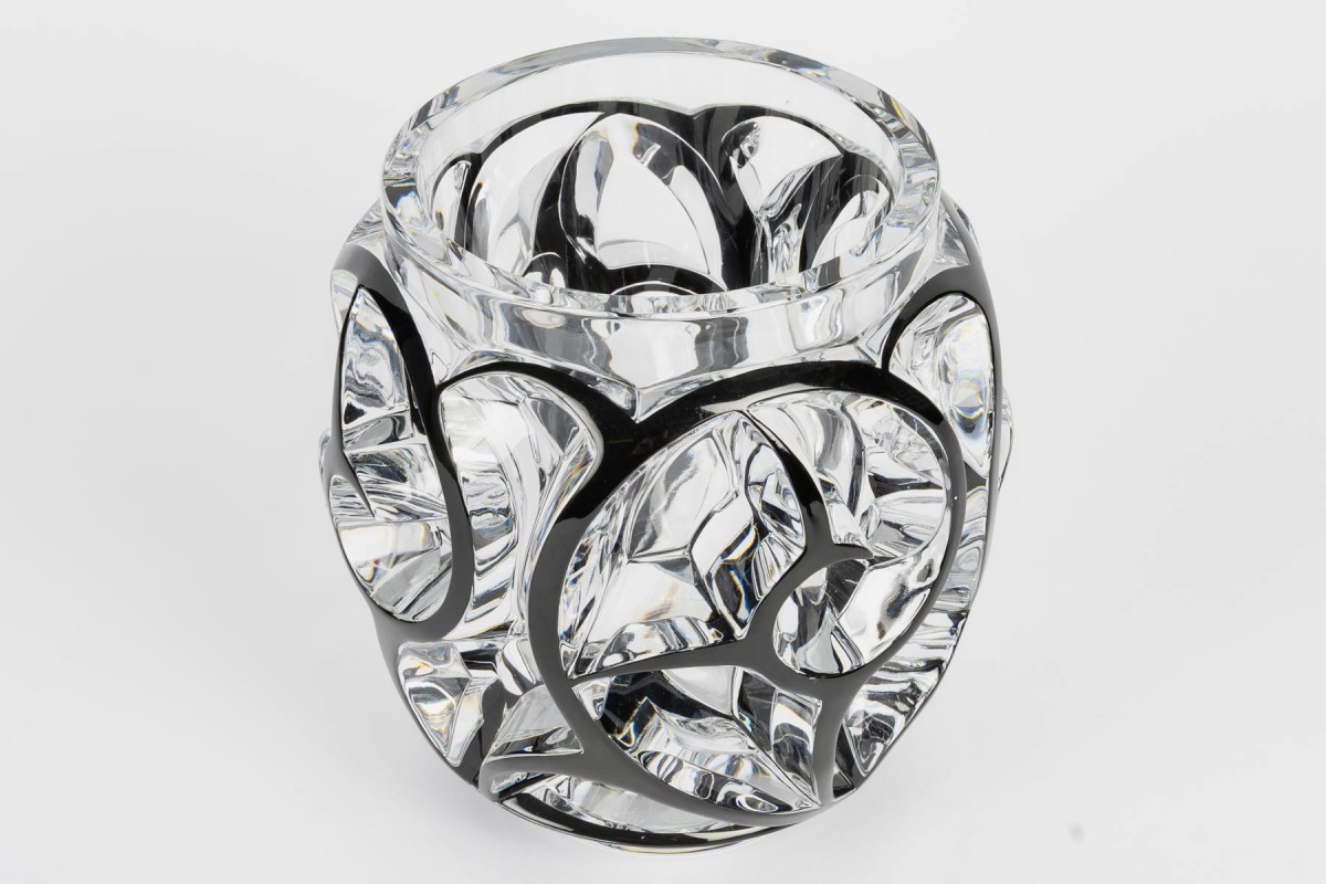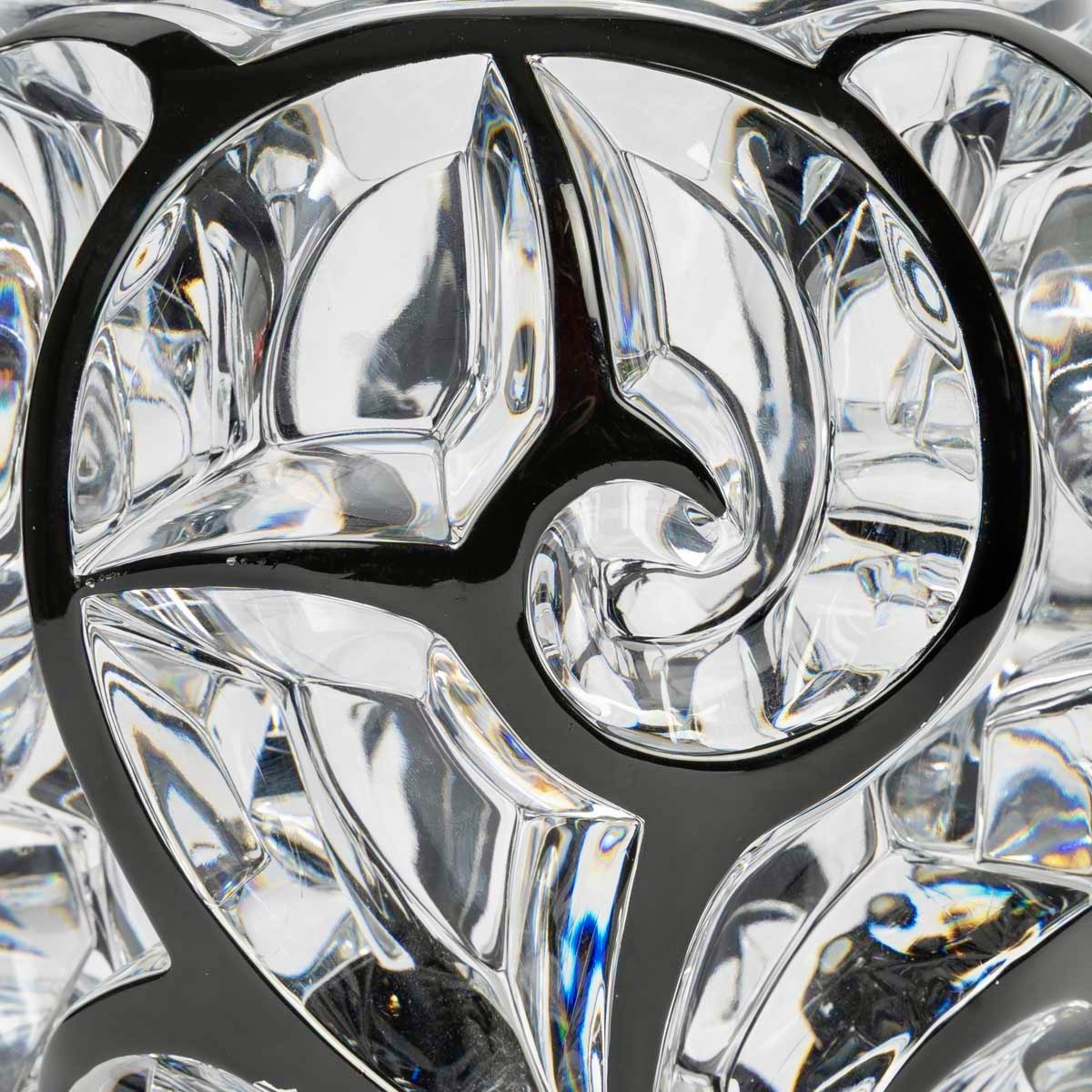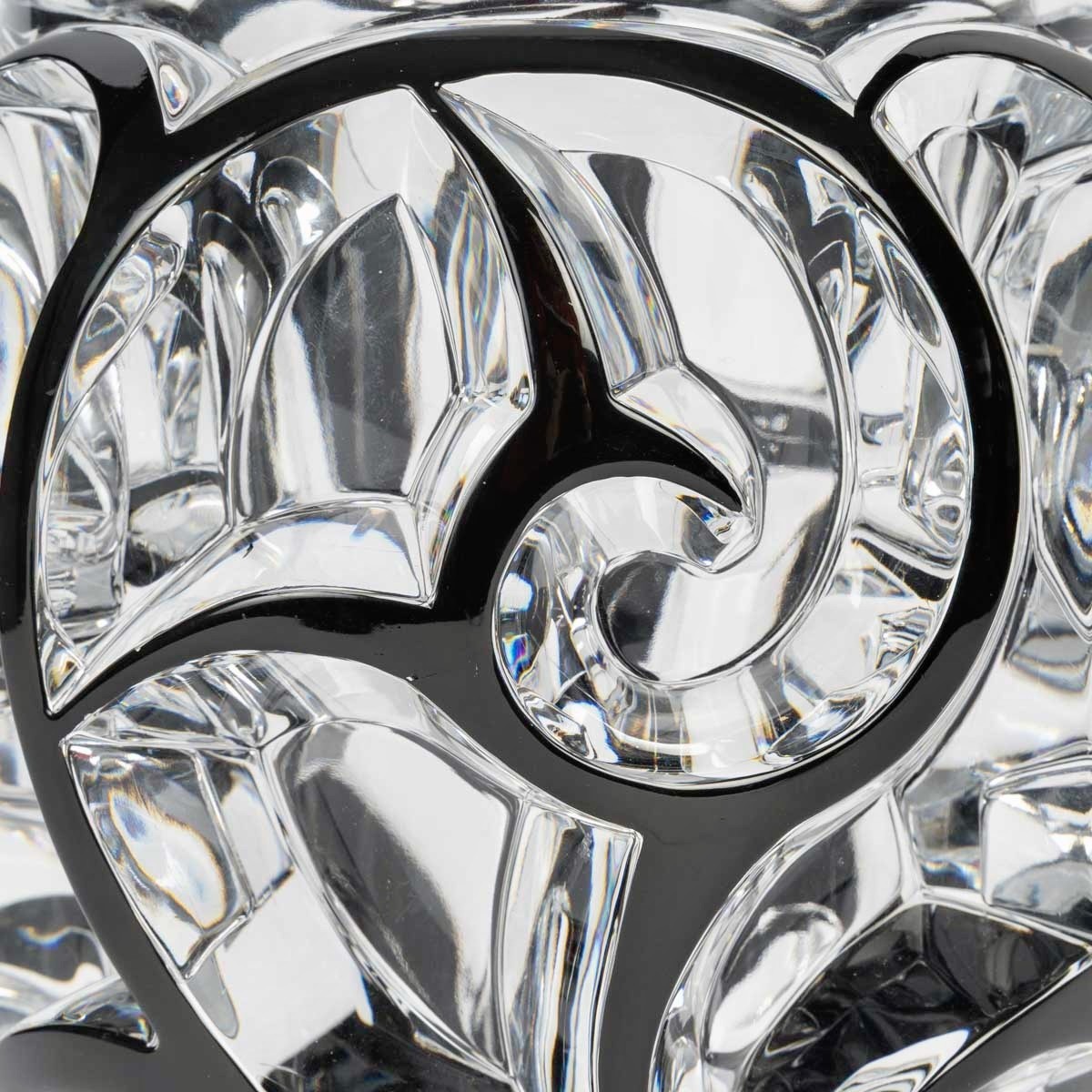 Vase "Tourbillons" made in clear crystal with black enamel by Lalique France after a model by René Lalique from 1926.