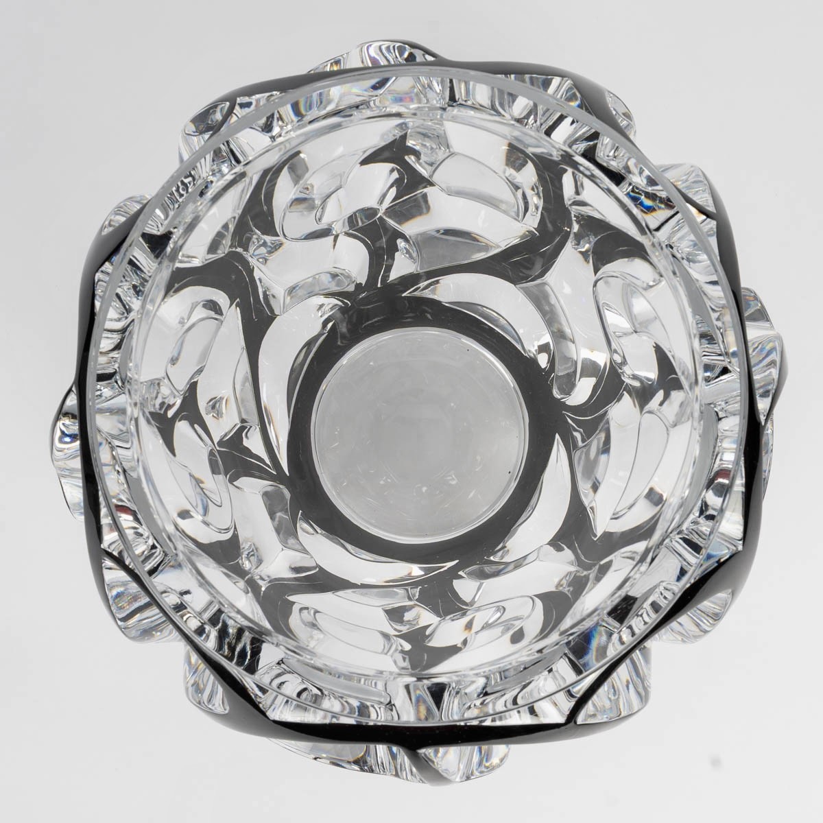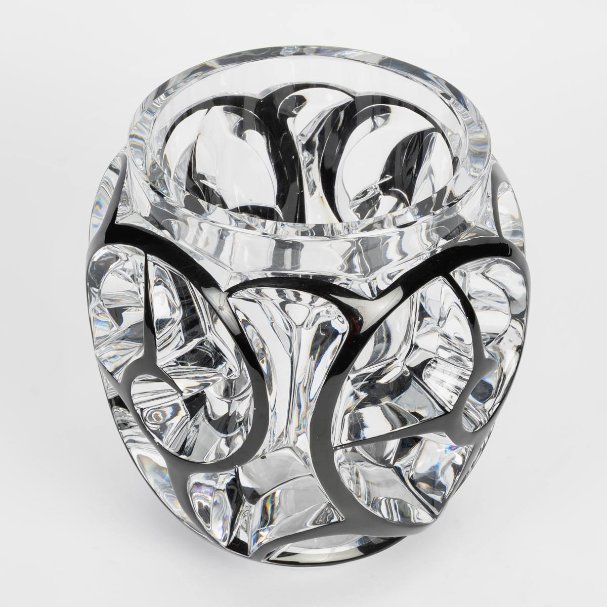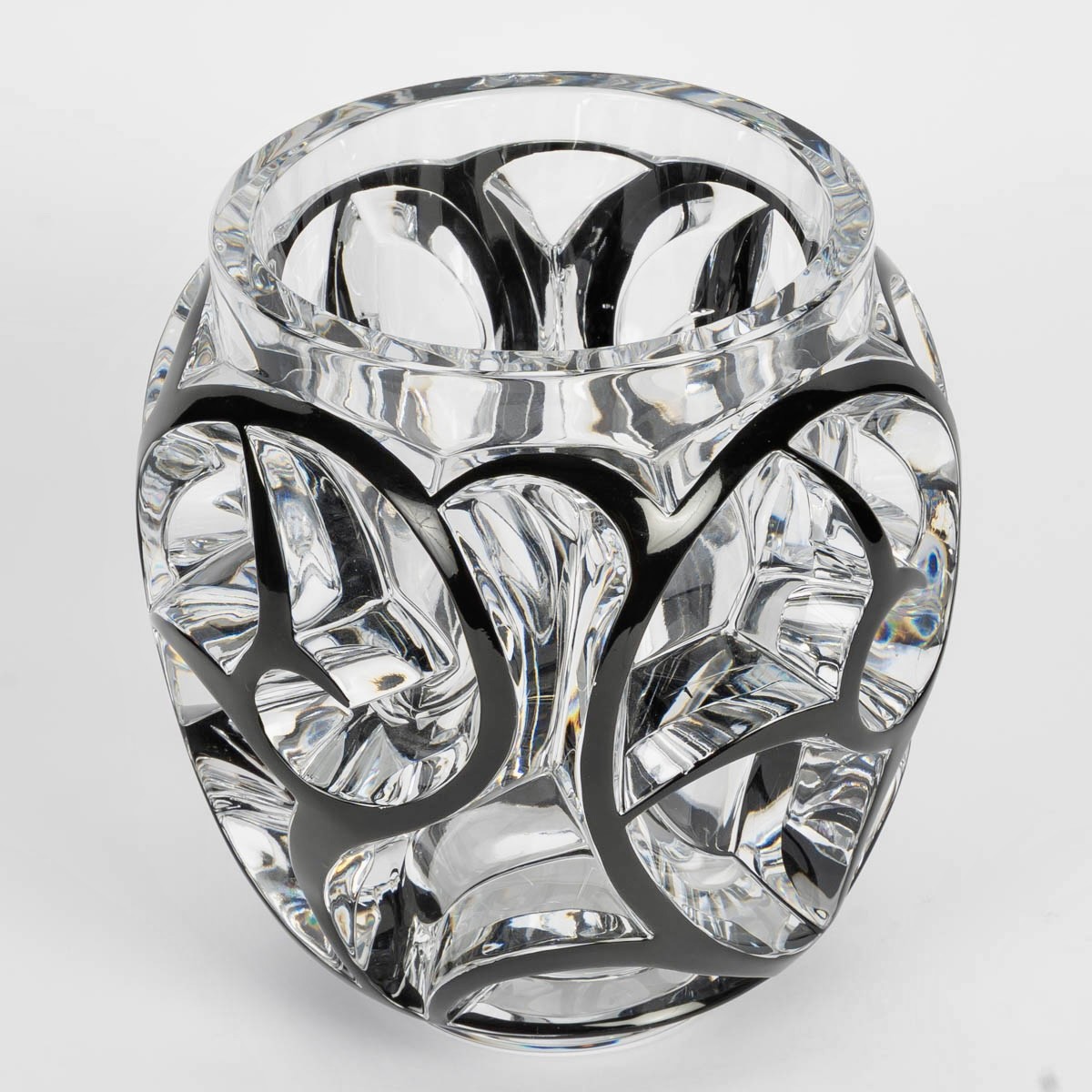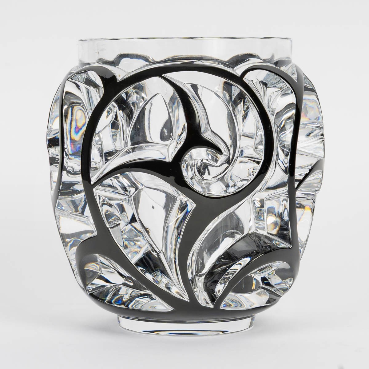 Vase "Tourbillons" made in clear crystal with black enamel by Lalique France after a model by René Lalique from 1926.