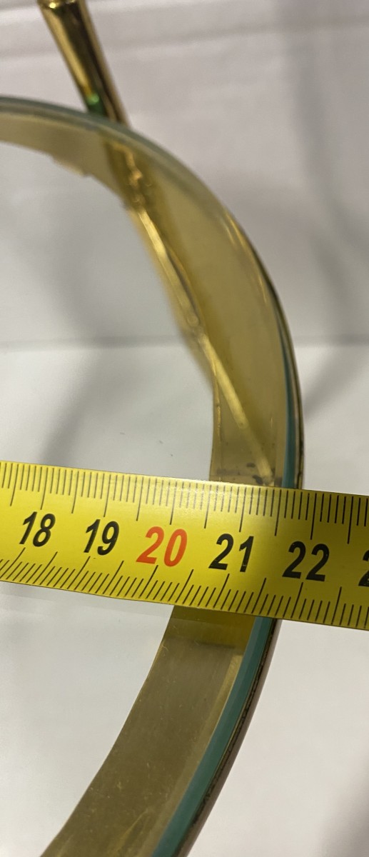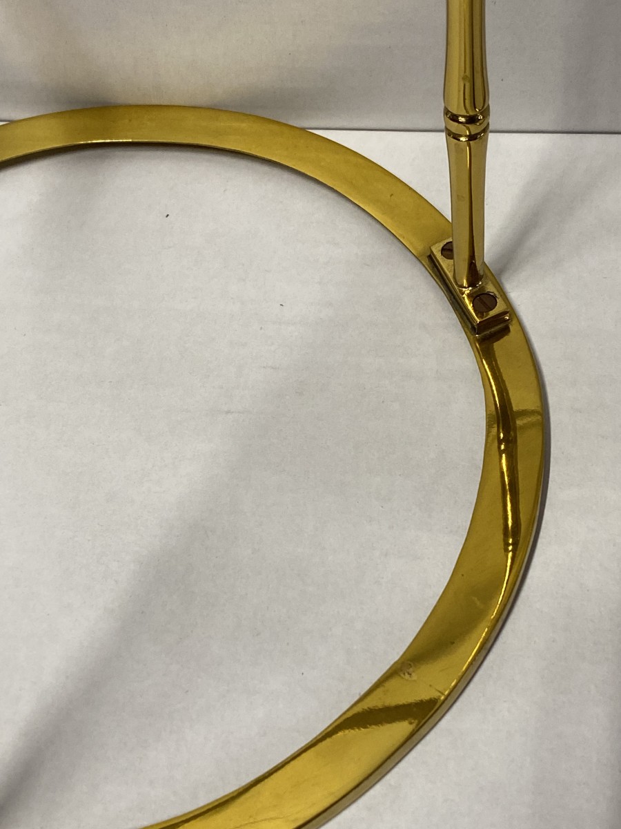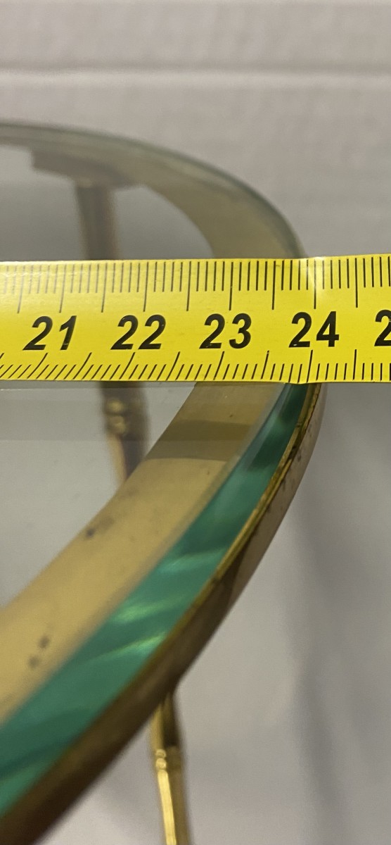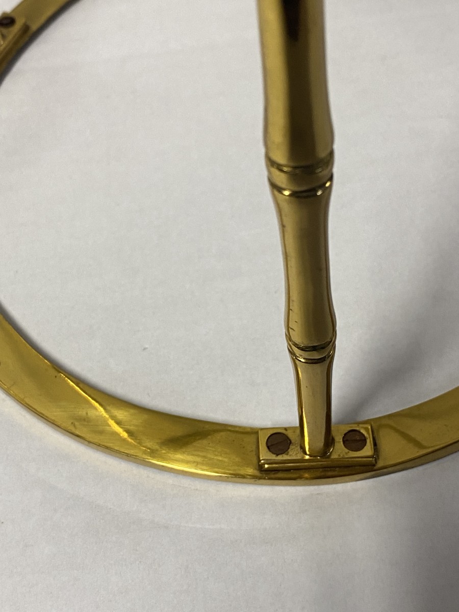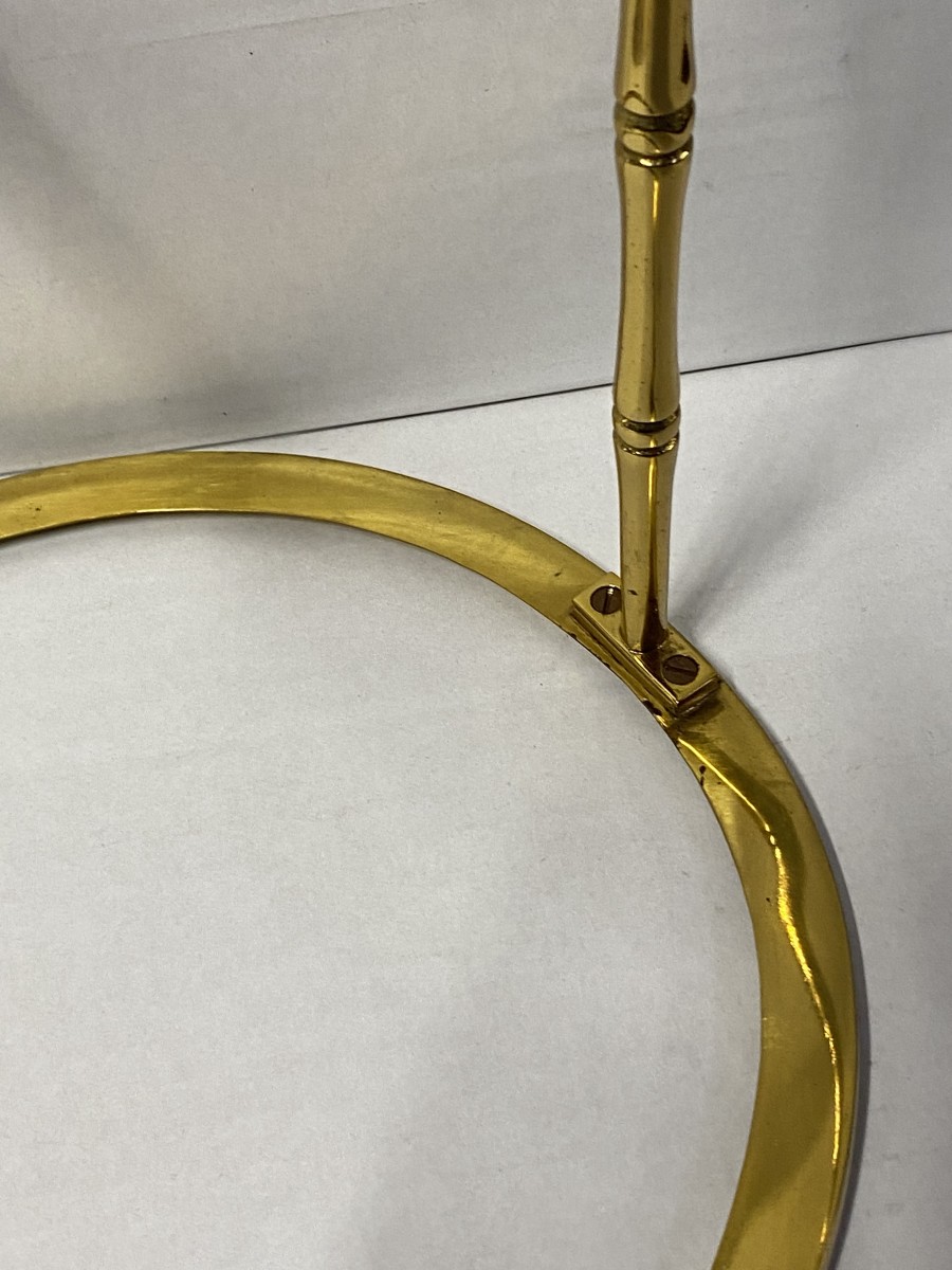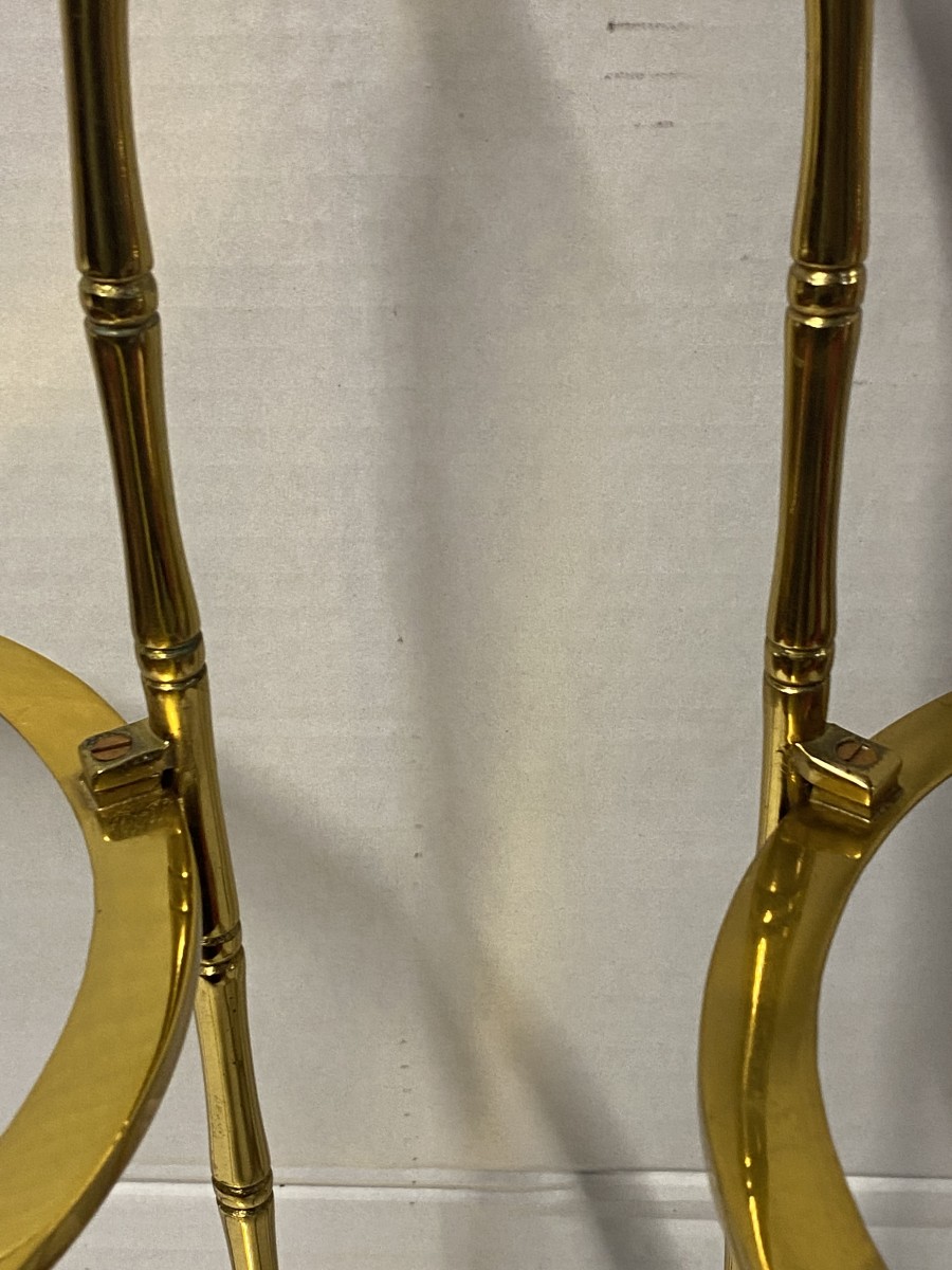 Pair of unsigned gilt bronze tripod pedestal tables with bamboo-decorated uprights and glass tops, all screwed together. Good condition, circa 1970 Height: 50 cm Diameter: 24 cm
