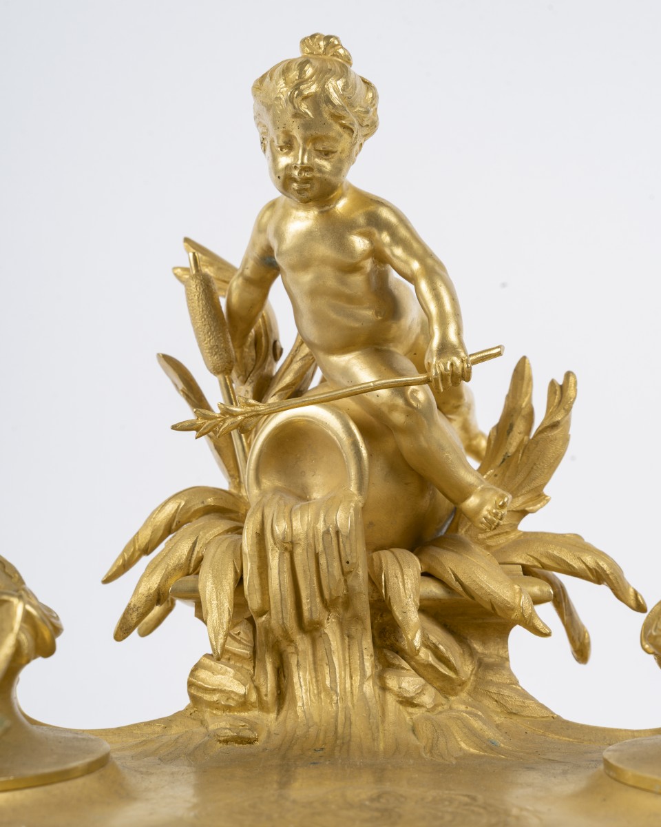 Very beautiful gilt bronze inkwell with abundant foliage decoration. I