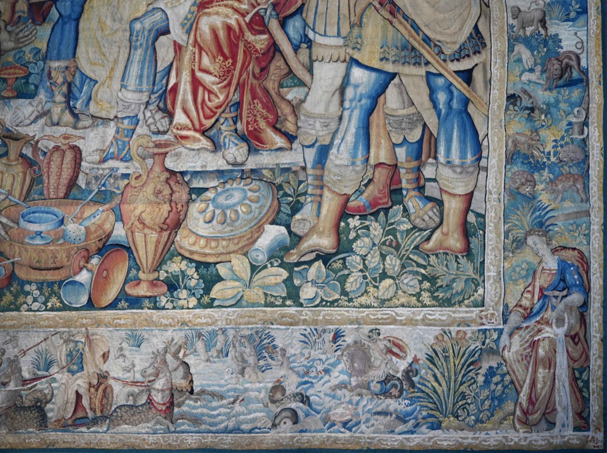 The tapestry before us is a testament to this mastery: we can see the depth of the landscape, the diversity of costumes, the finesse of facial expressions, and above all the skill in narrating a complex story in a readable and spectacular way.