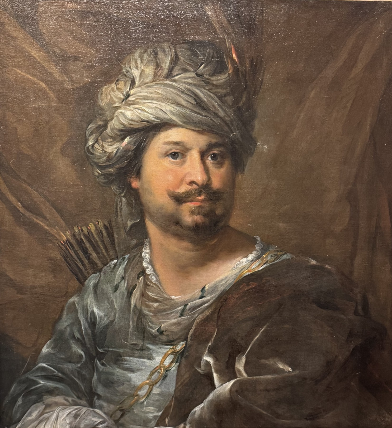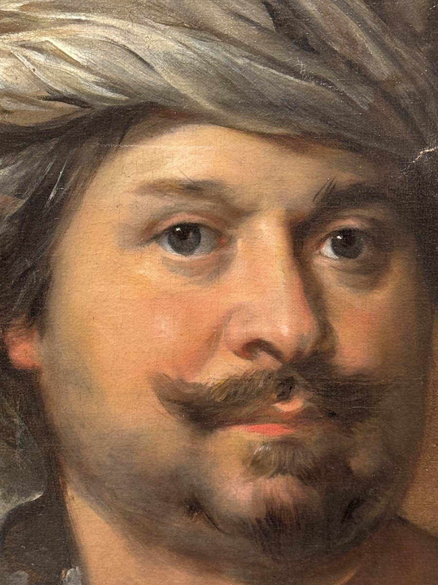 Portrait of a man dressed in oriental style, carrying a quiver. In Flanders and Holland, in the 17th century, it was fashionable to be depicted in oriental costume, reflecting the importance of the Dutch East India Company, thanks to which the urban elites became considerably richer. Dutch School, mid-17th century. Some restoration work required. 75x71