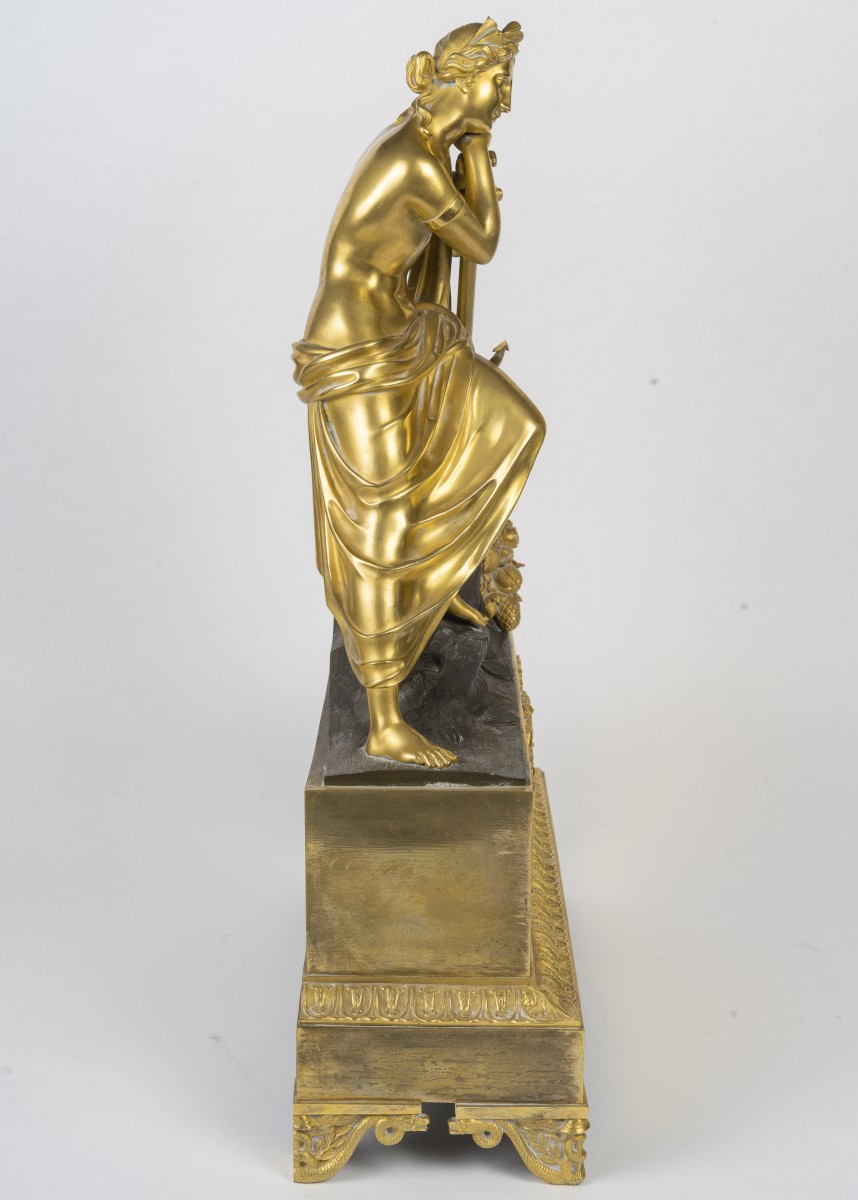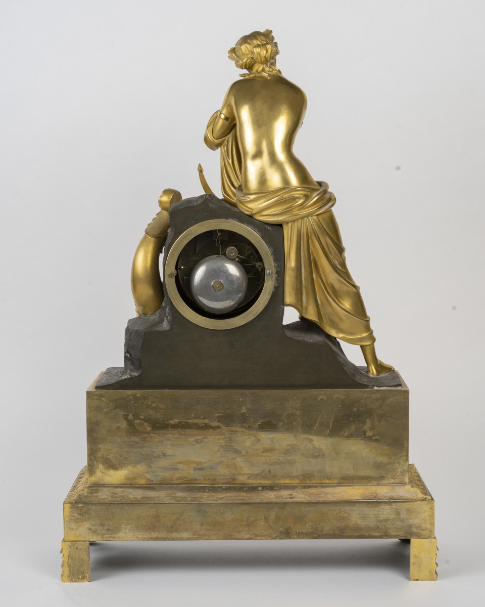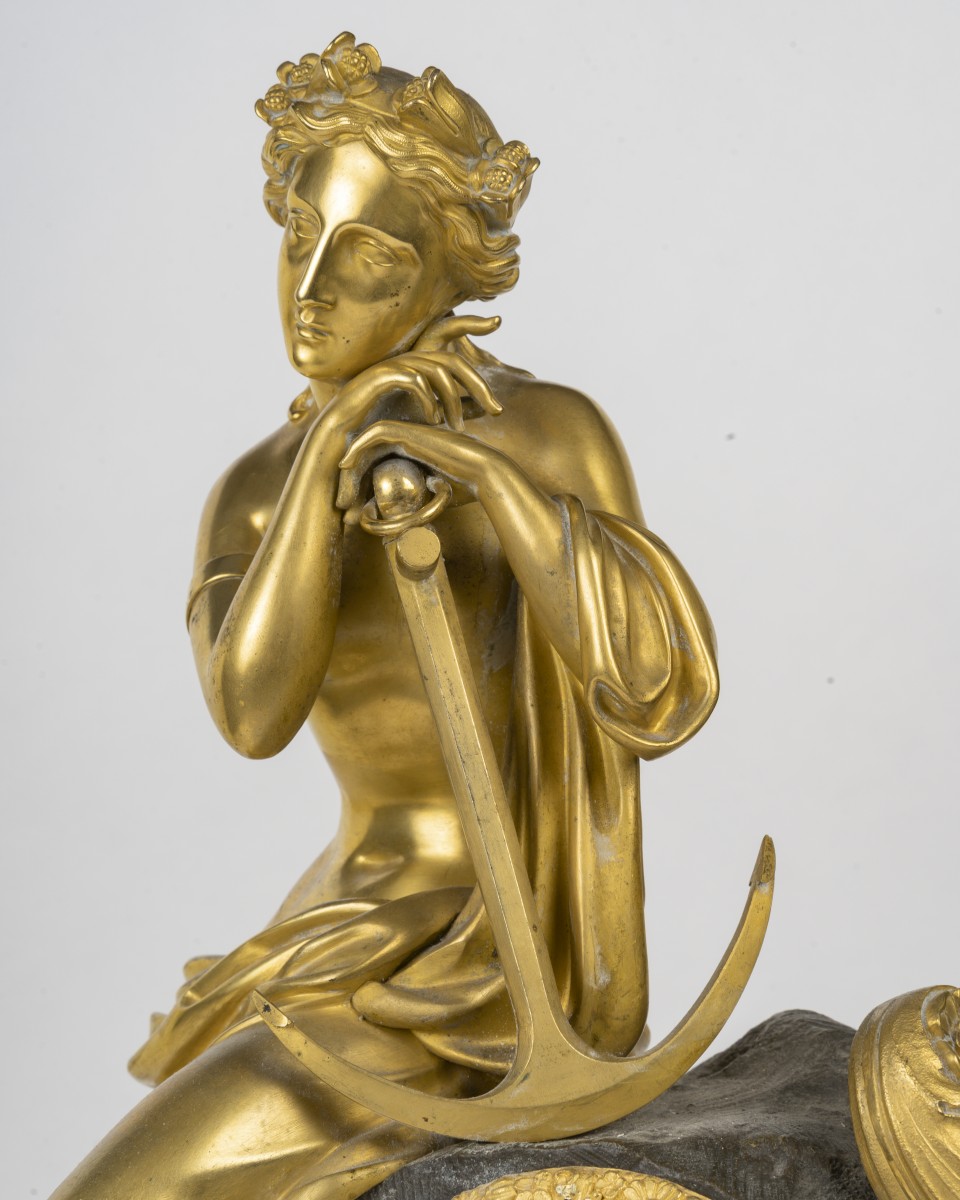 Elegant gilt bronze clock with double patina depicting a graceful allegory of the Sea.