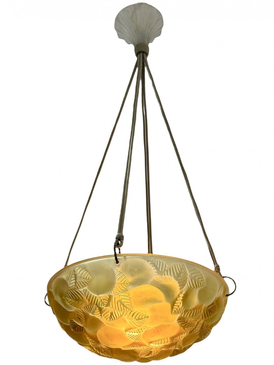 Ceiling Fixture Chandelier "Lausanne" made in yellow amber glass by René Lalique in 1929.