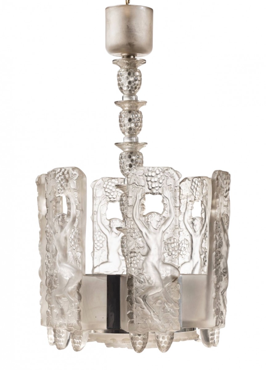 Chandelier Ceiling Fixture "Faunes" made in glass by Marc Lalique in 1948.