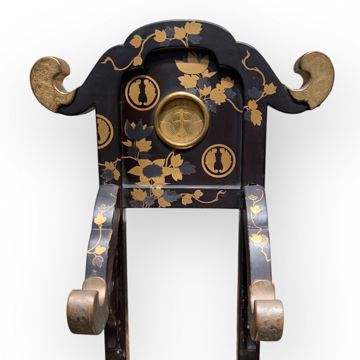 Black lacquer ky?dai decorated with the kamon Maru ni Daki My?ga against a background of clematis – Japan, Edo period, second half of the 18th century