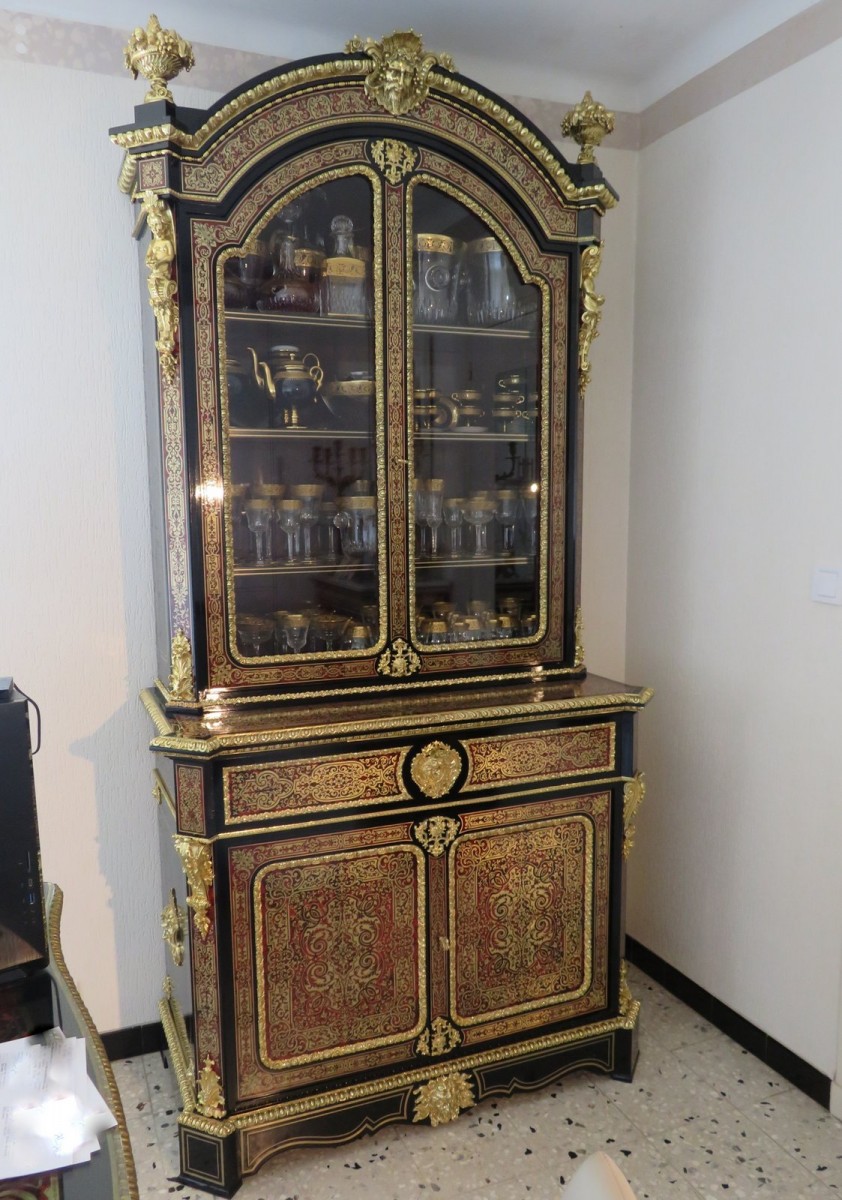 Furniture with 2 doors inlaid Boulle marquetry caryatids “cross “