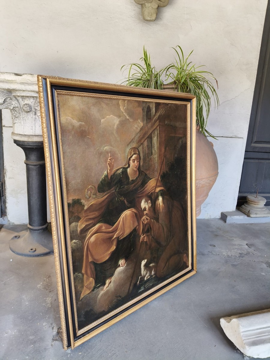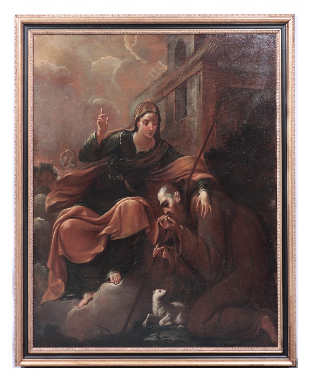Italian painter: Saint François de Paule Oil painting on canvas representing The Madonna and Saint François de Paule Period: 17th century Provenance: Central Italy Dimensions with frame: 128cmx106cm