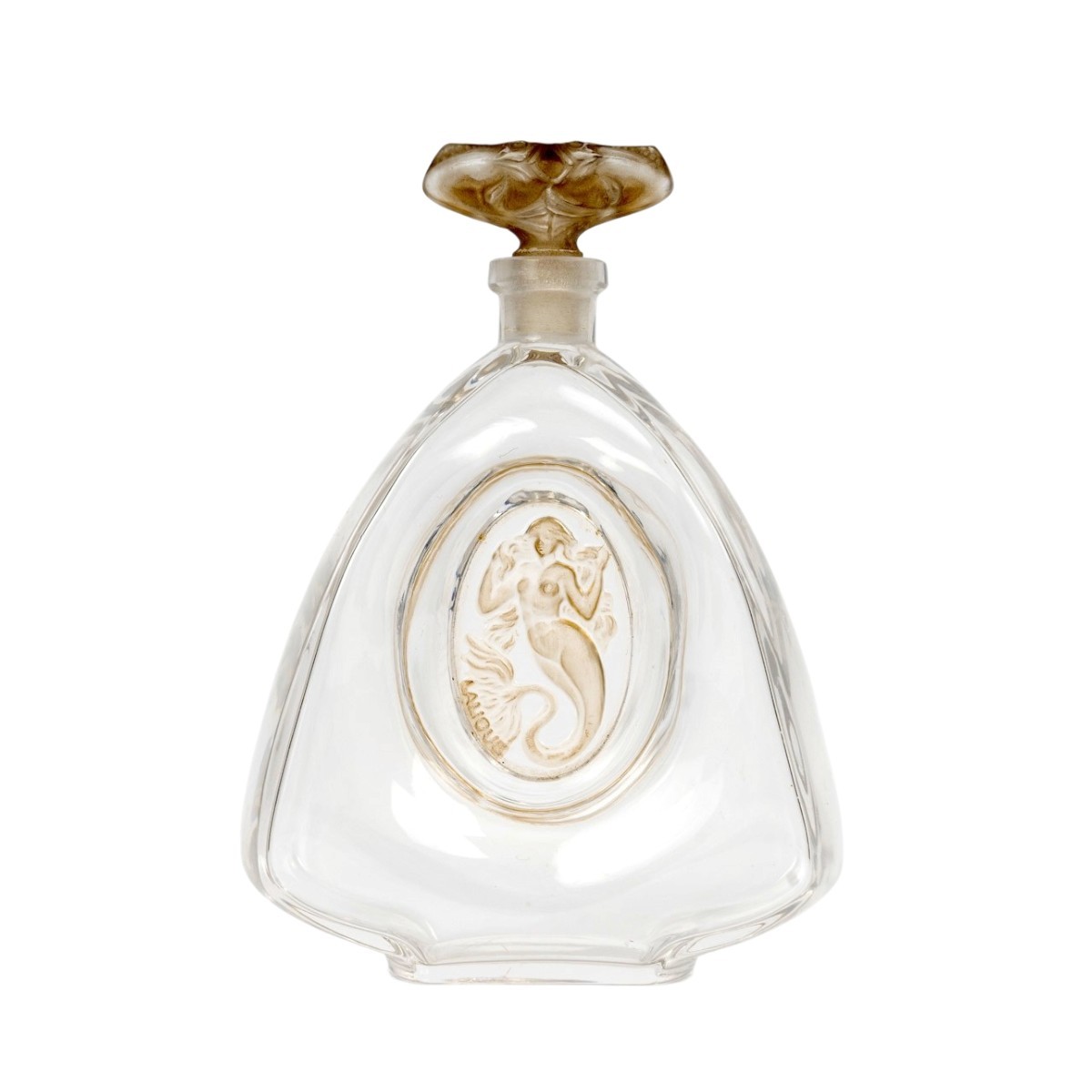 Perfume Bottle "La Sirene" made in glass with sepia patina by René Lalique in 1912 for Burmann.