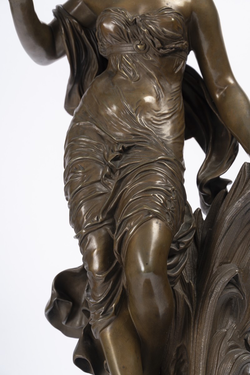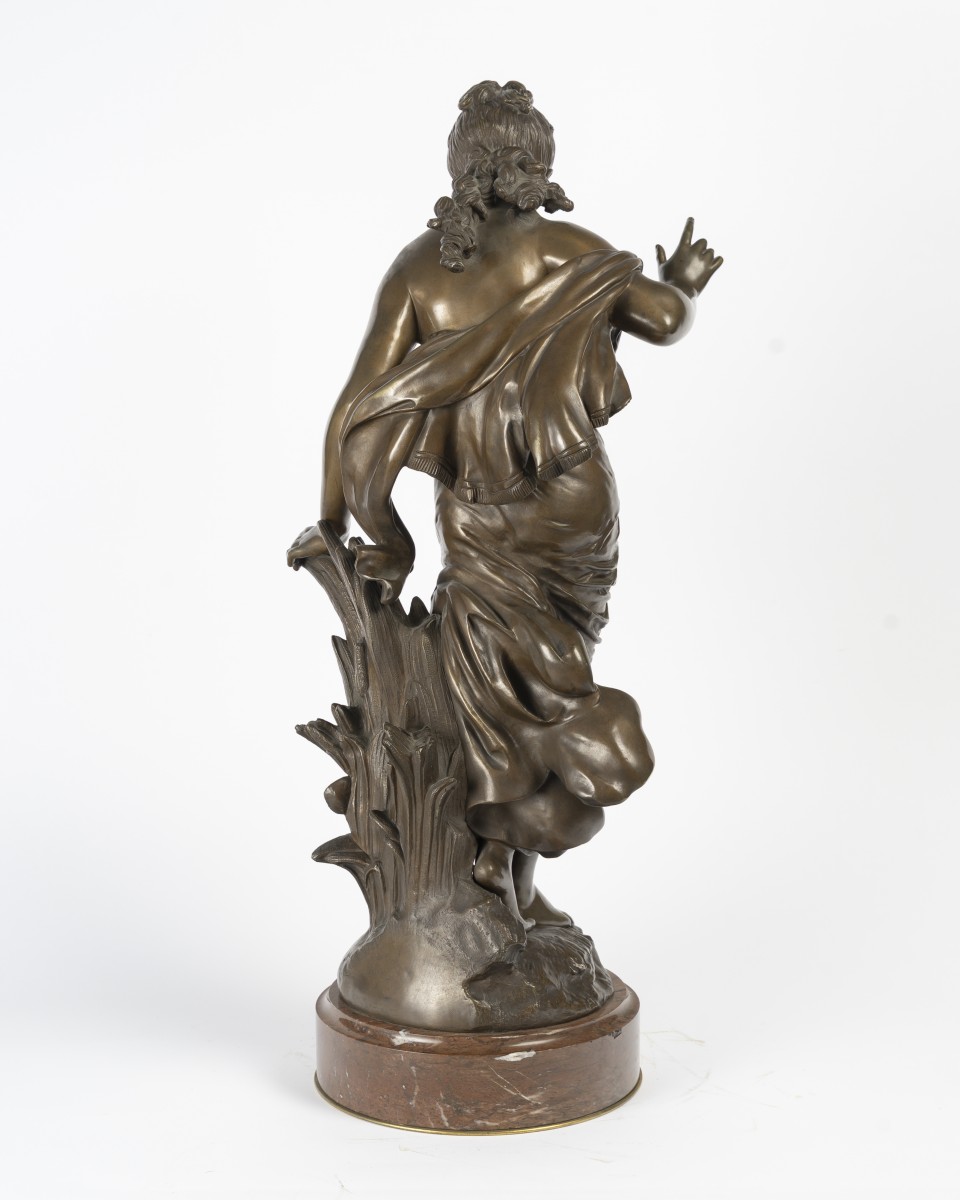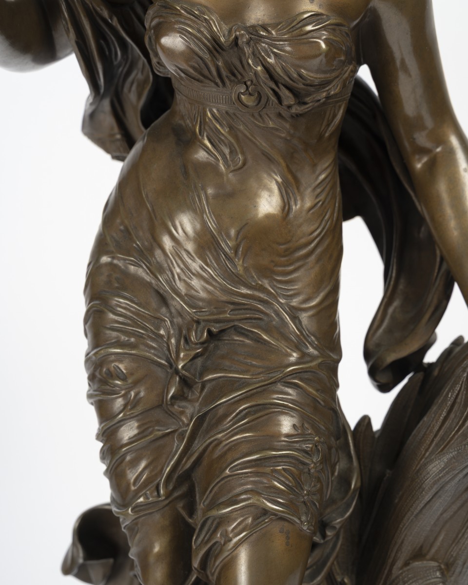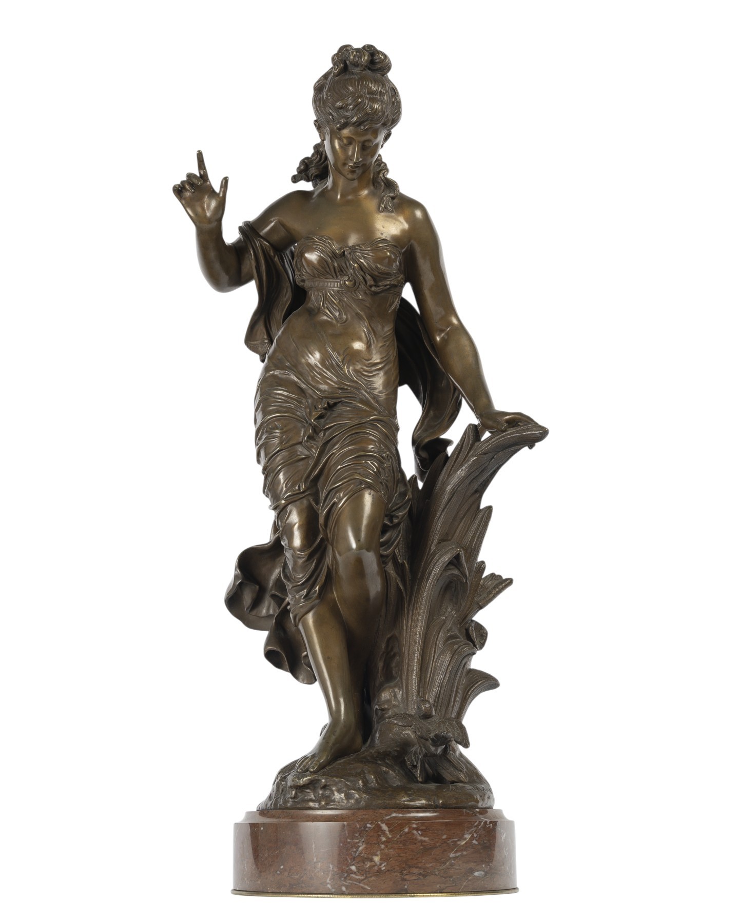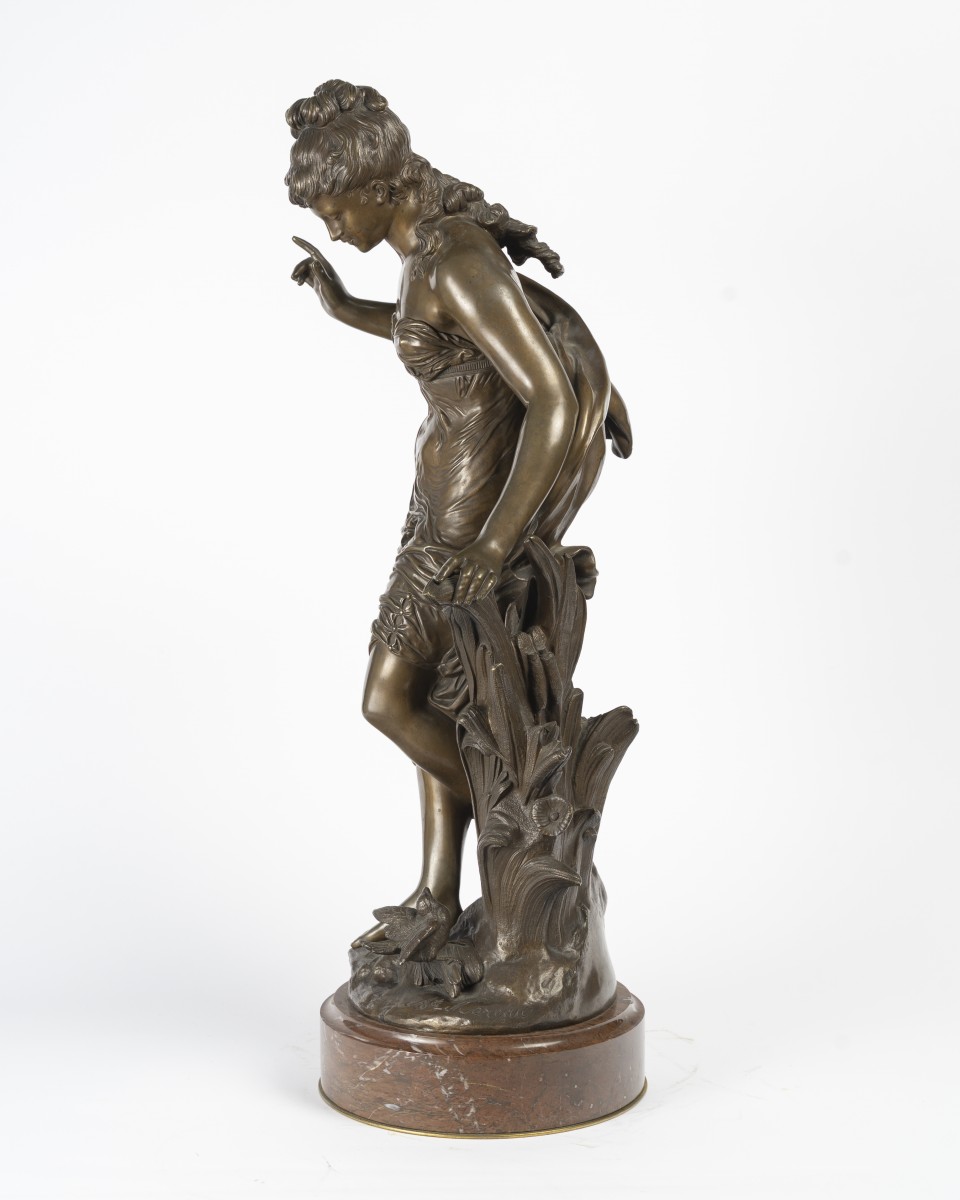 A beautiful late 19th-century sculpture of a woman with a bird by Louis Auguste Moreau.