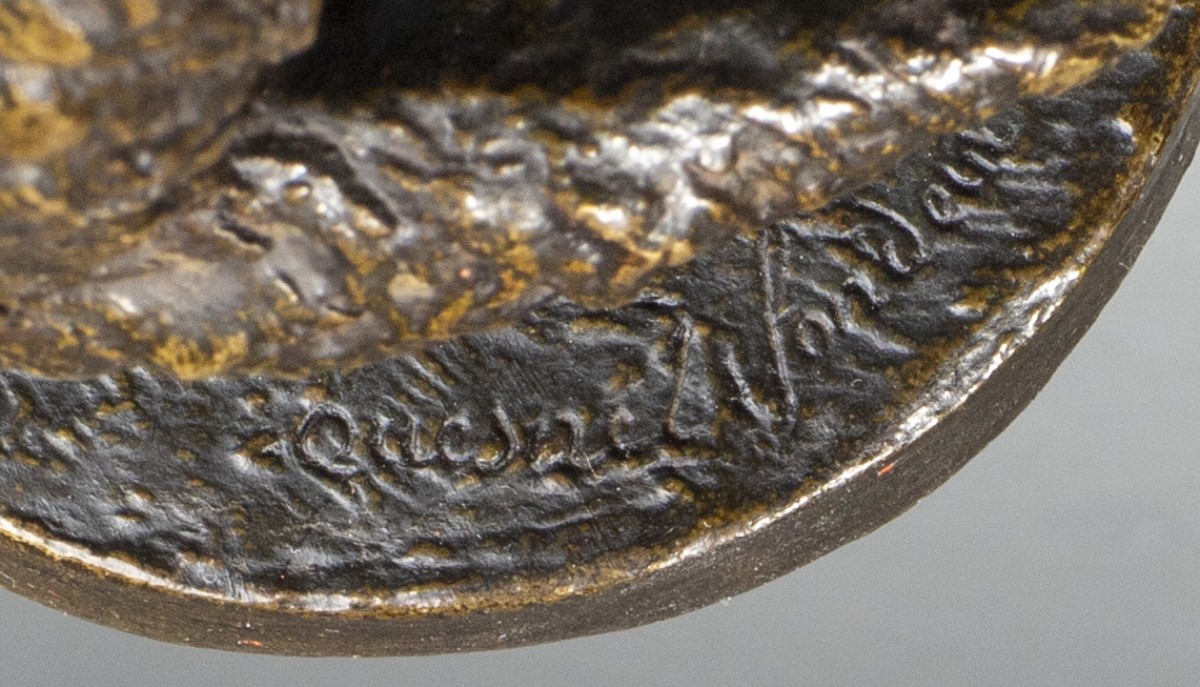 Bronze with nuanced brown patina, stamped « FRATIN ». Cast by Eugène Quesnel. Bears the founder's mark « Quesnel fondeur ». Circa 1840