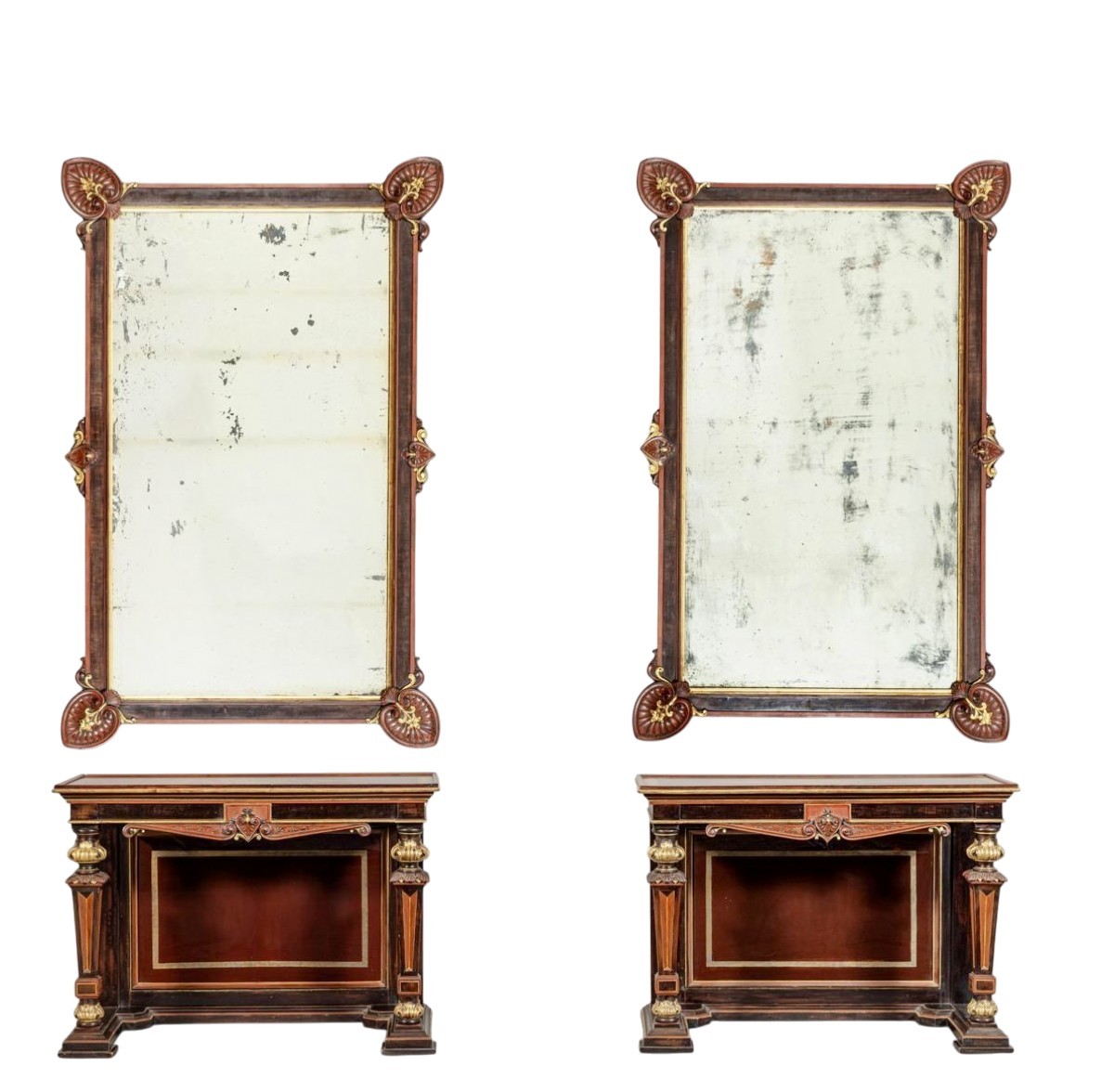 Pair of consoles and their mirrors - Furniture Style Napoléon III Pair of consoles and their mirrors -