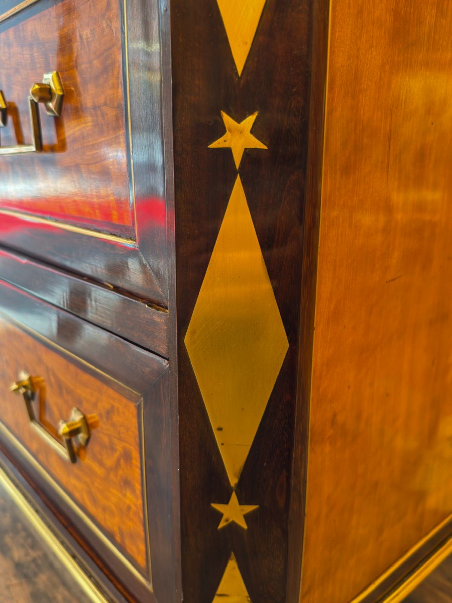 Directoire Period Amaranth and Lemon wood veneer Commode with Ormolu Mounts - Furniture Style Directoire Directoire Period Amaranth and Lemon wood veneer Commode with Ormolu Mounts - Directoire Period Amaranth and Lemon wood veneer Commode with Ormolu Mounts - Directoire Antiquités - Directoire Period Amaranth and Lemon wood veneer Commode with Ormolu Mounts