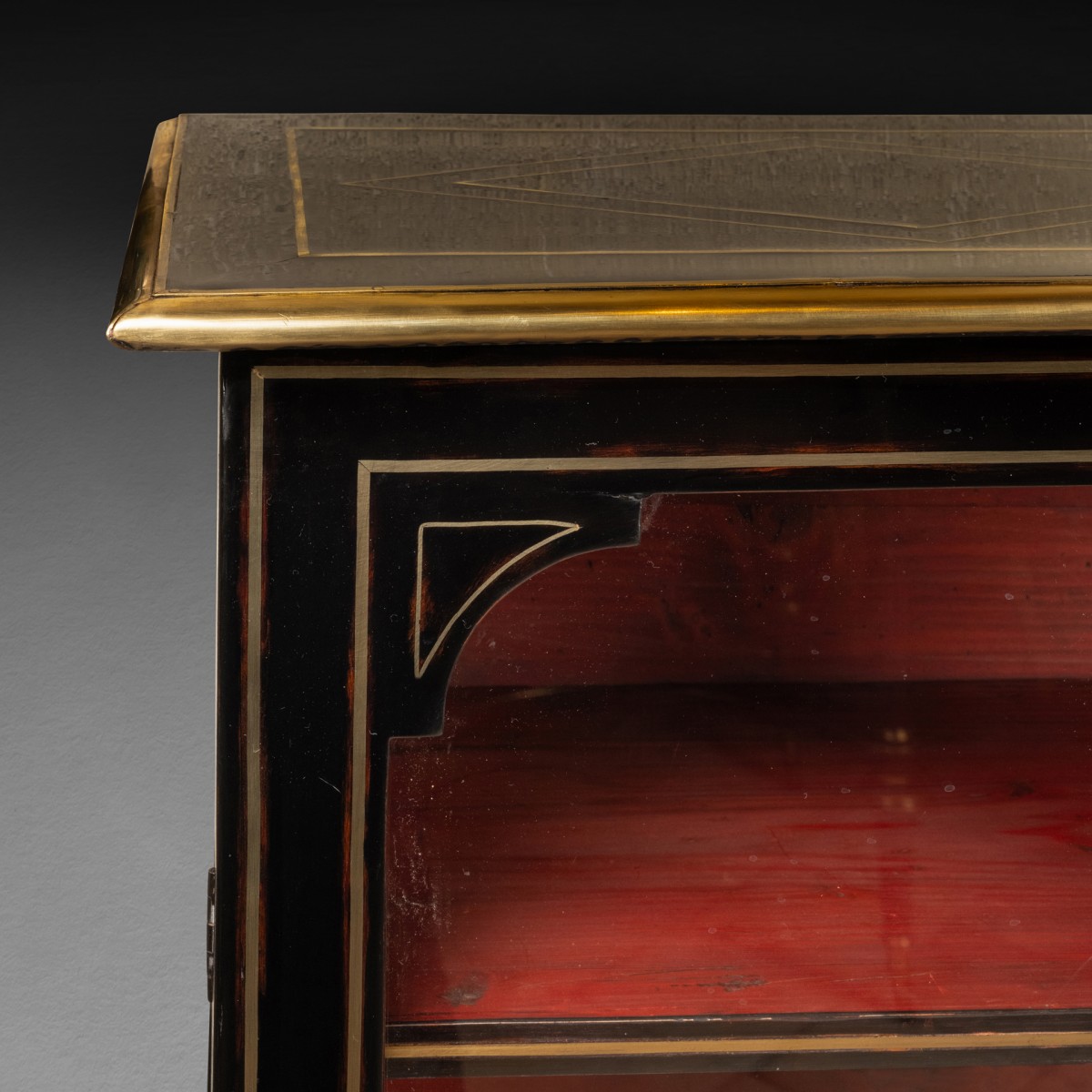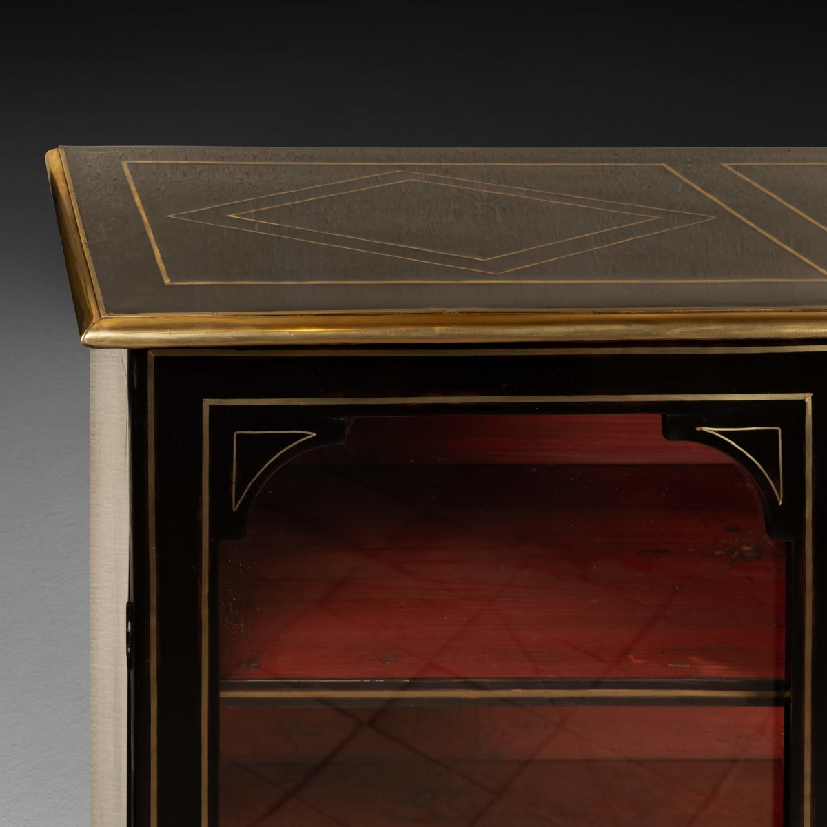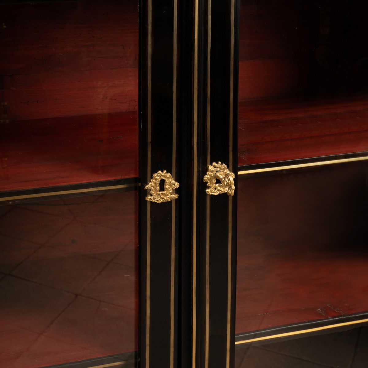 Two-door bookcase in ebony veneer and blackened pear wood.