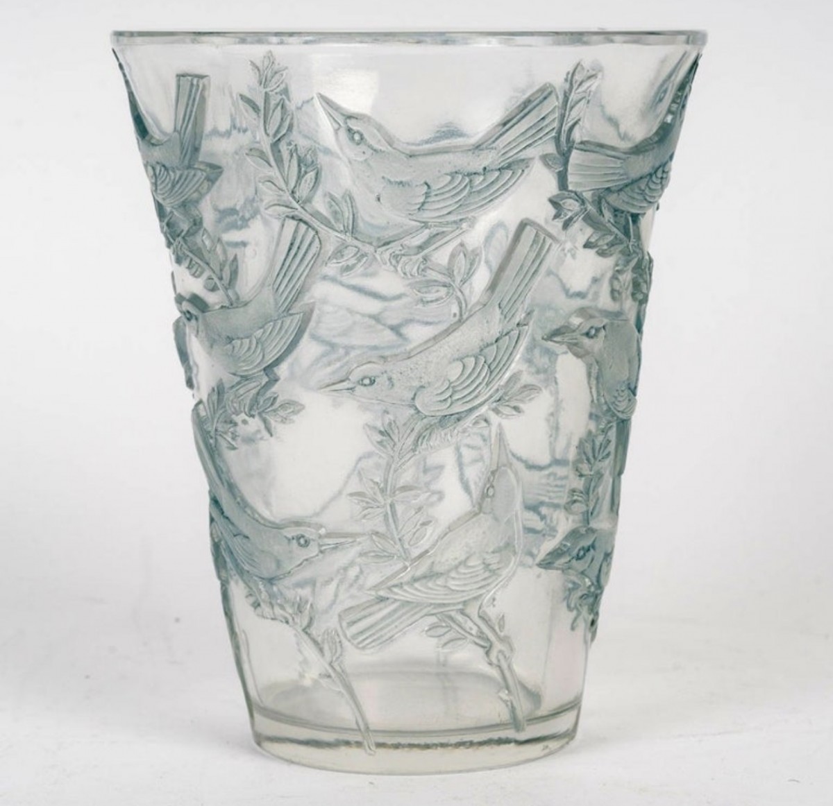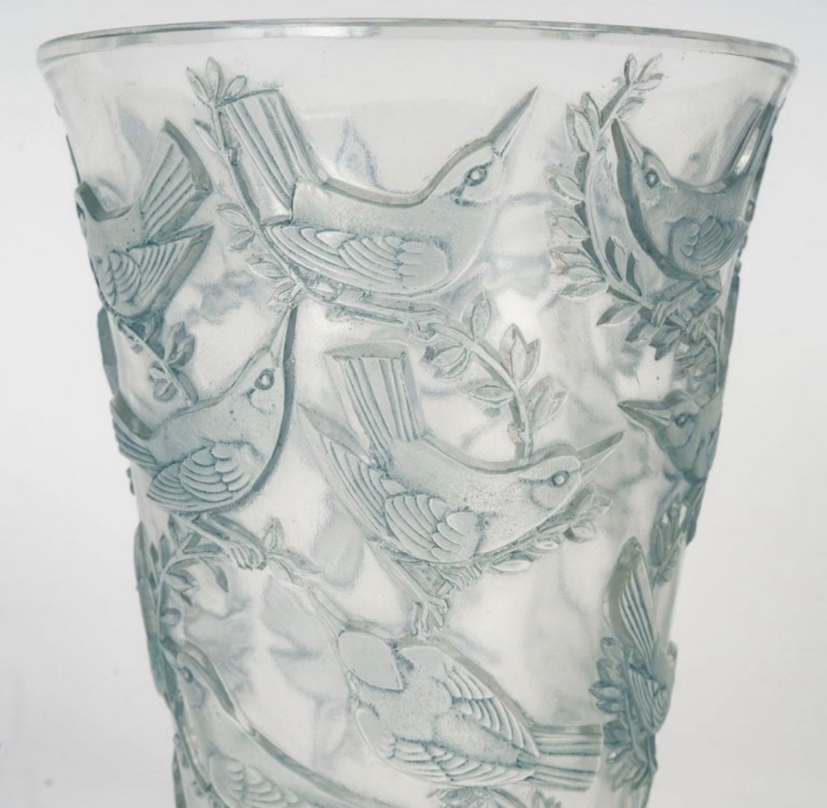 1938 René Lalique - Vase Grives Blue Patina - Glass & Crystal Style Art Déco 1938 René Lalique - Vase Grives Blue Patina -