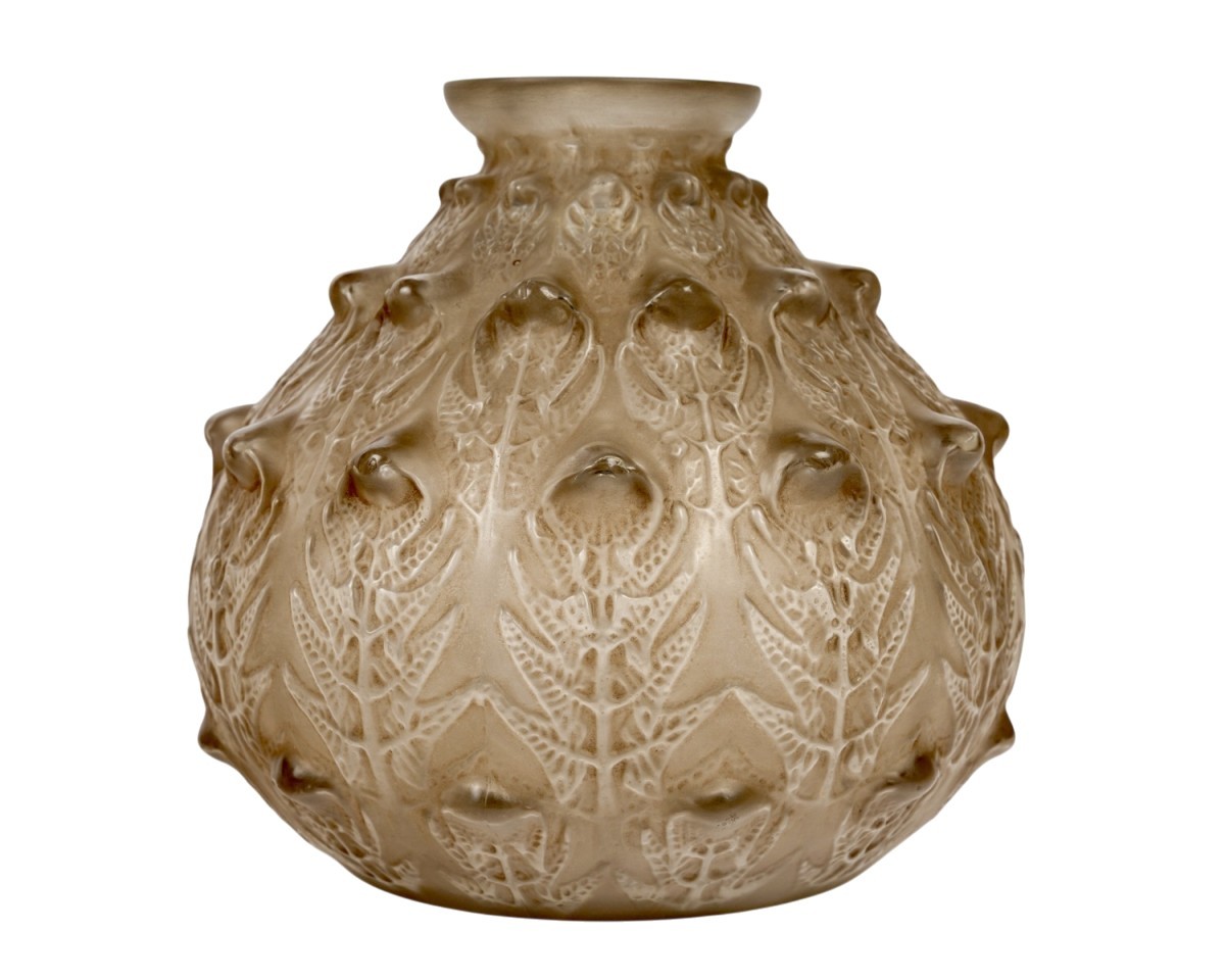 Vase "Fougeres" (Ferns) made in glass with sepia patina by René Lalique in 1912.