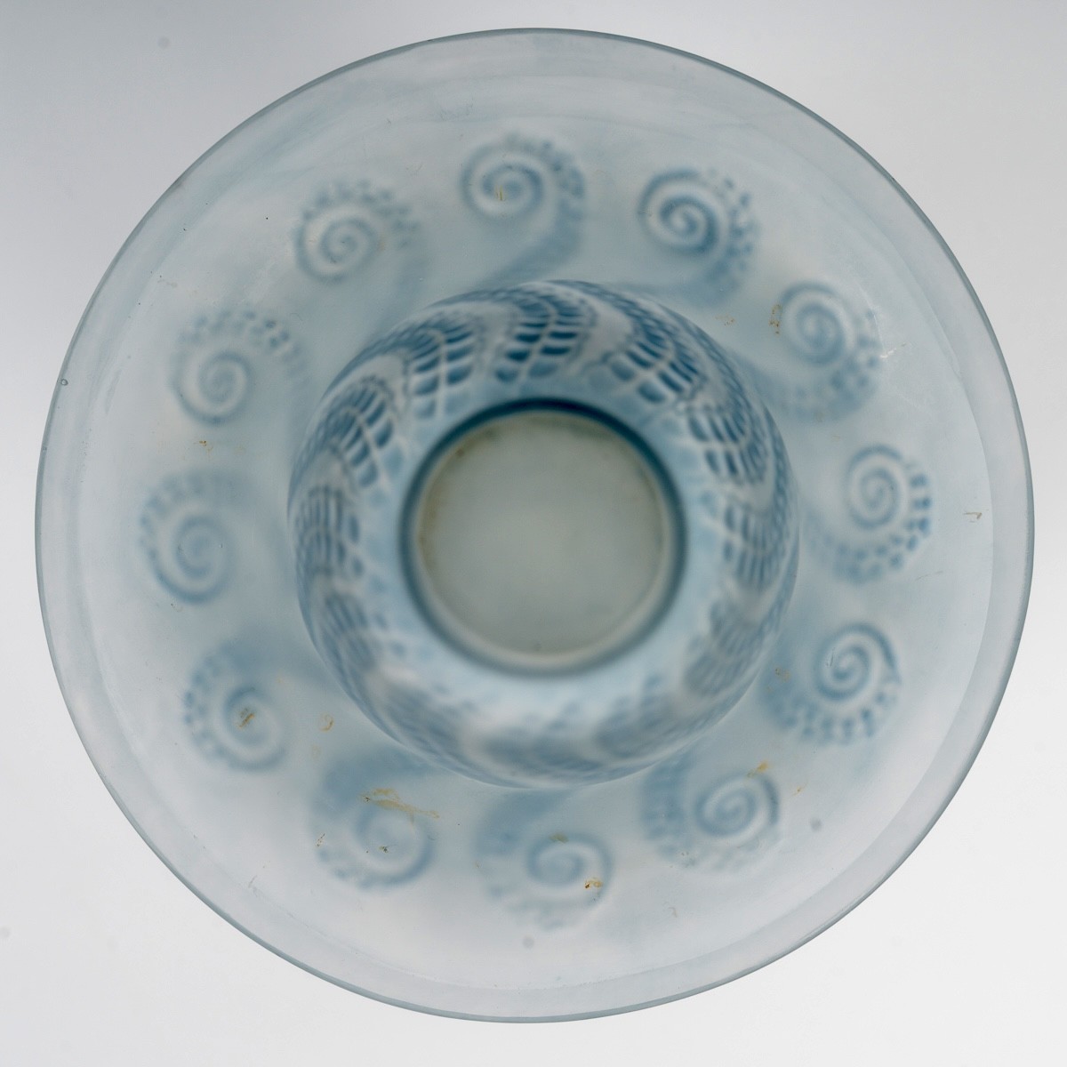 Vase "Meduse" made in frosted glass with blue patina by René Lalique in 1921.