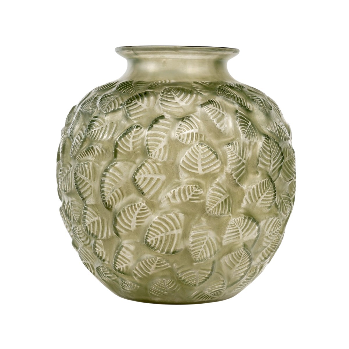Vase "Charmille" made in frosted glass with green patina by René Lalique in 1926.