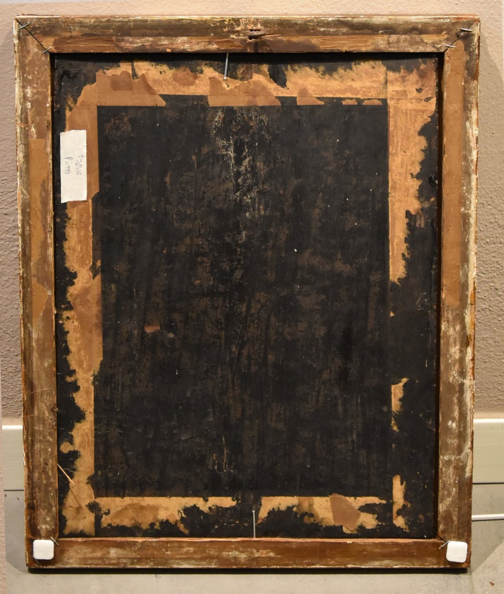 Oil on panel “en camaieu” (monochrome) in purple 49 x 38 cm with frame 56 x 45 cm.