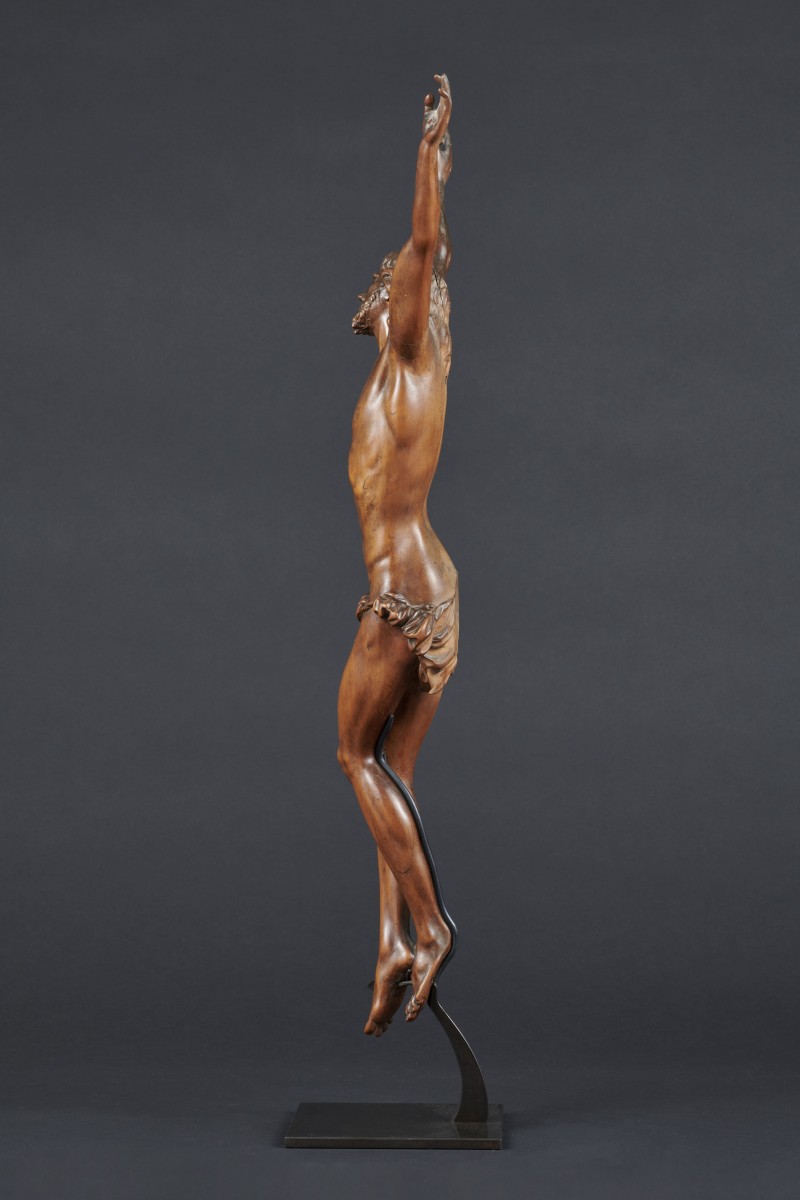 The side-knotted perizonium, delicately folded, is rendered with remarkable virtuosity. The quality of the carving and the nobility of the chosen wood reveal the hand of a master sculptor, likely active in Flanders at the end of the seventeenth century.