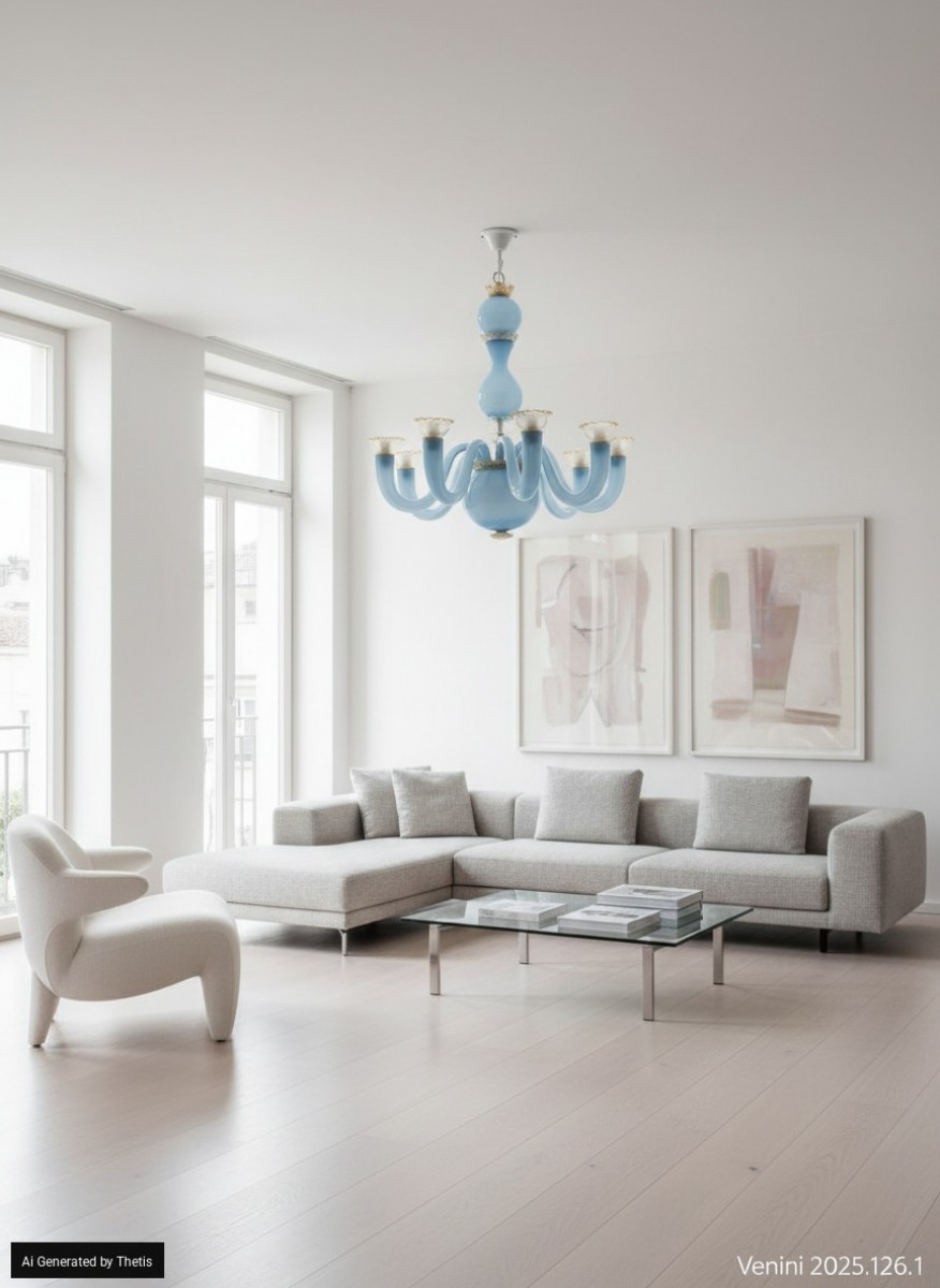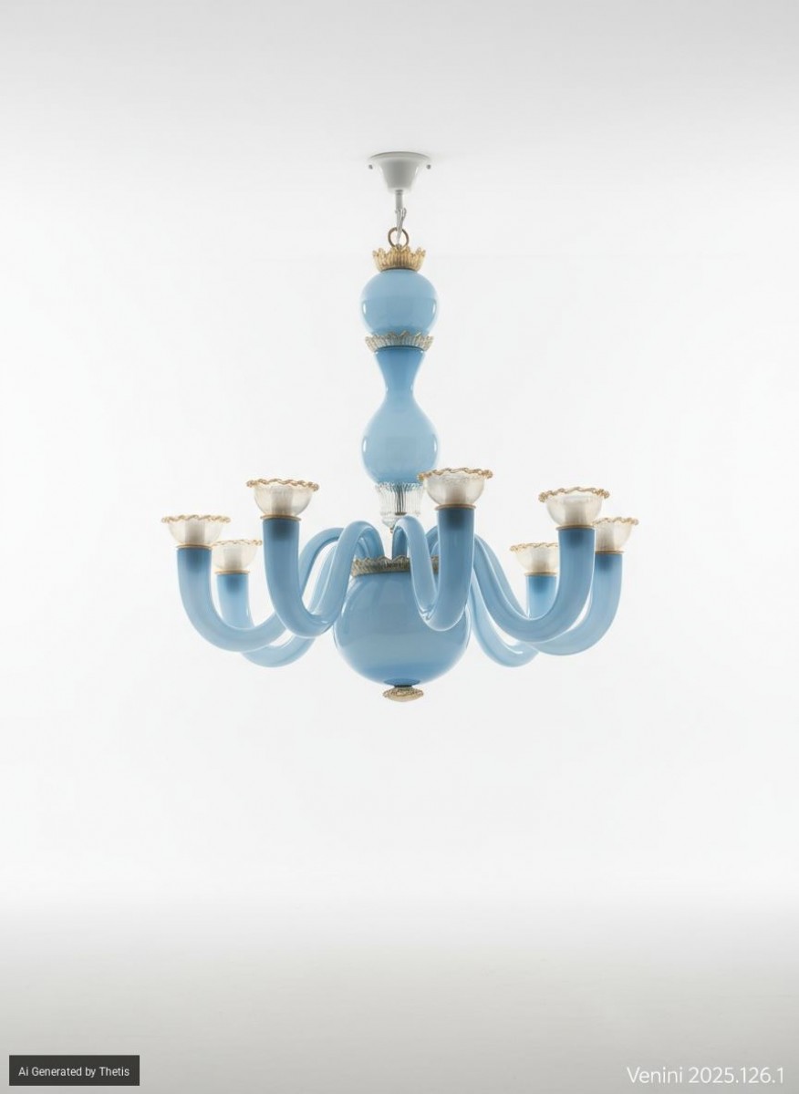 Blue glass and gold leaf glass, produced by Venini, 70 x 71 cm
