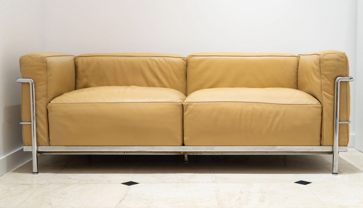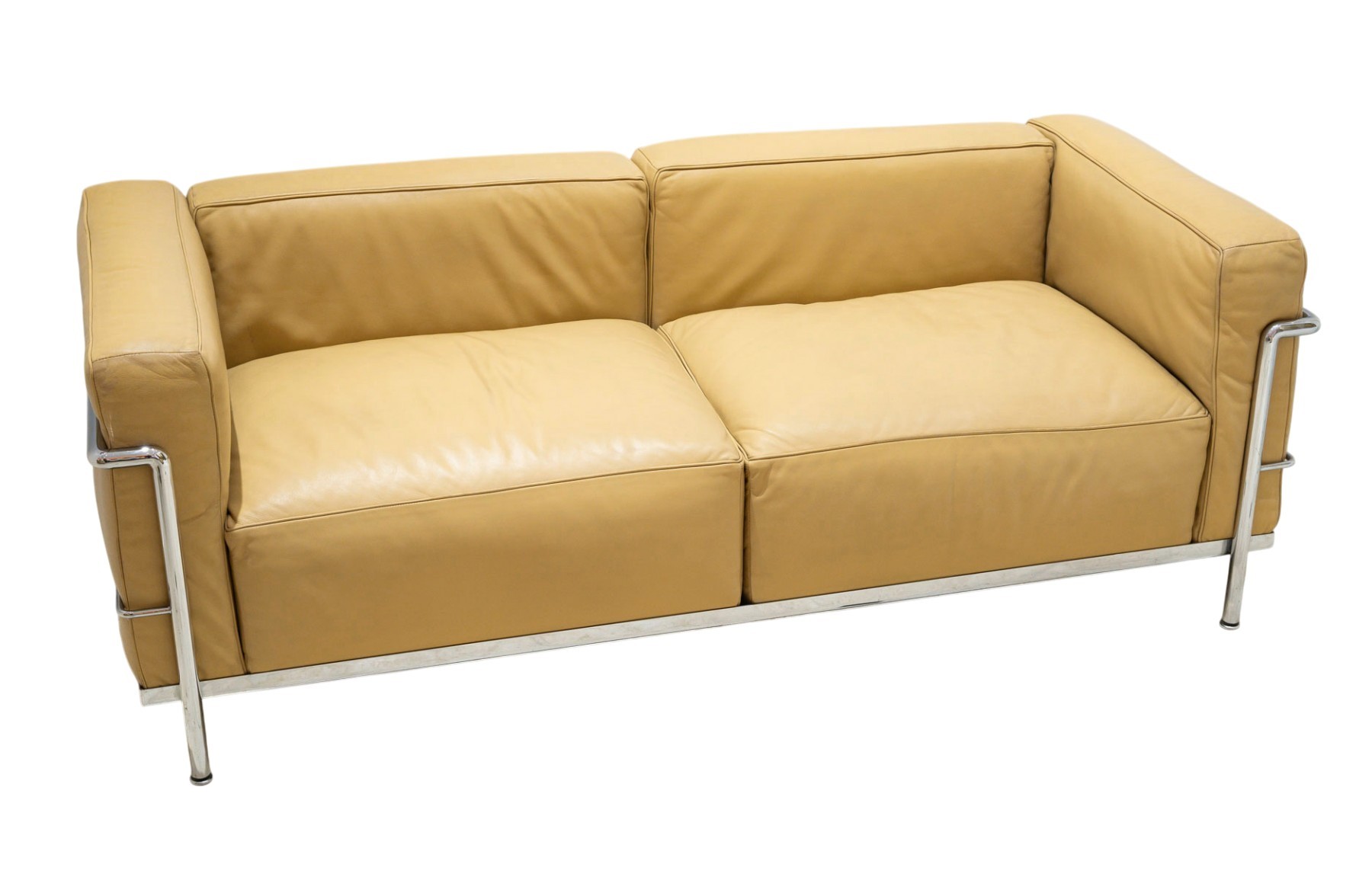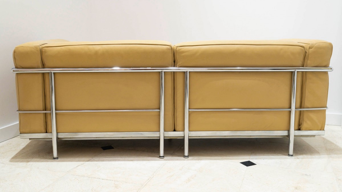 Authentic LC3 two-seater sofa designed by Le Corbusier, Perriand, and Jeanneret.