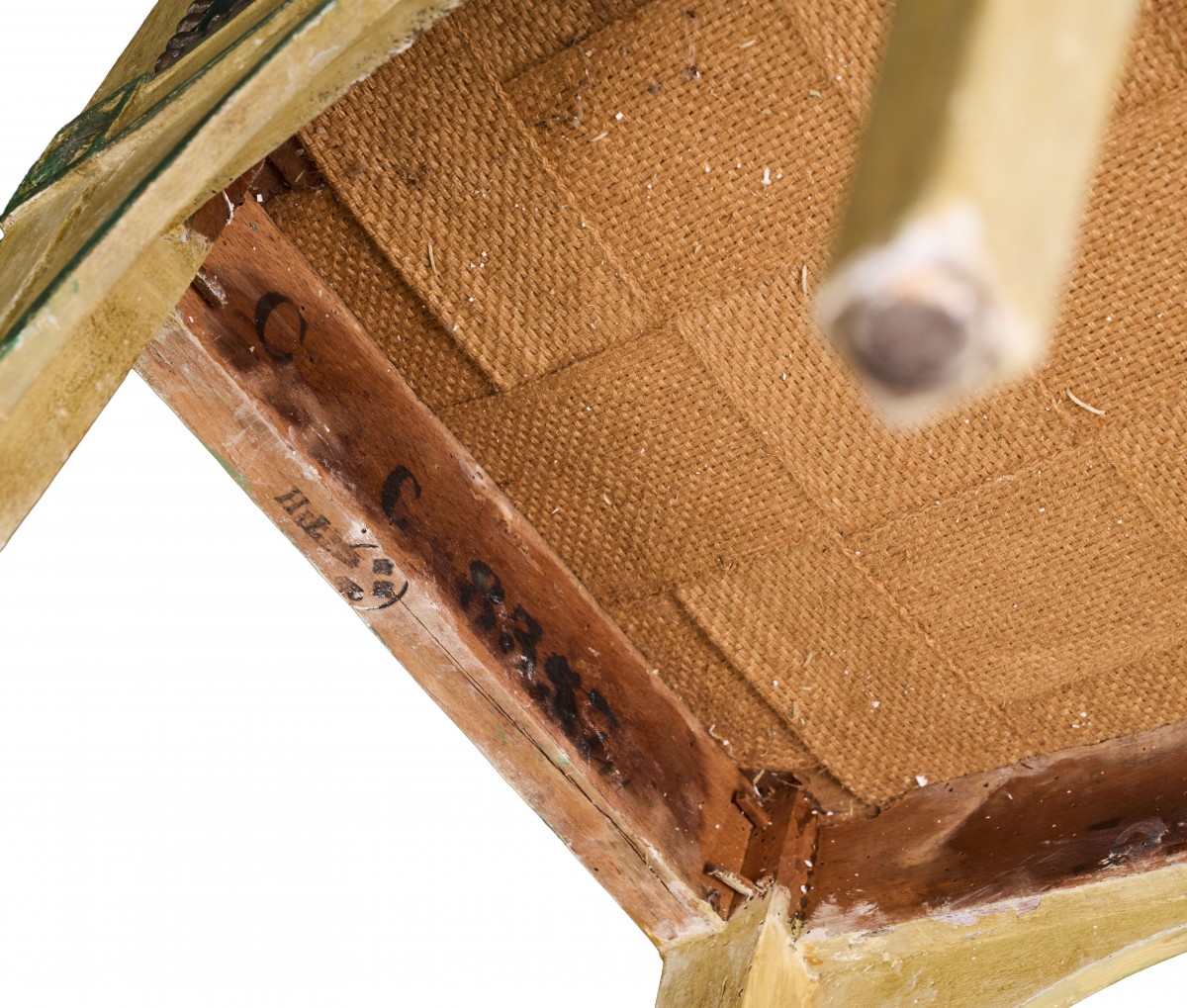 Made of molded and carved wood, re-lacquered in cream and green, this beautiful Directoire period set has the very rare distinction of benefiting from a prestigious provenance. The many marks it bears, labels and inventory numbers, testify to its long history within the royal and imperial collections.