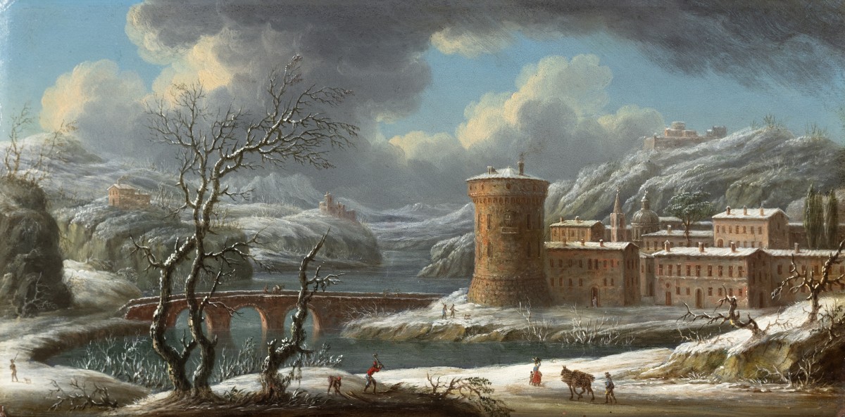 Together, the pair can be interpreted as an allegory of seasonal duality—winter and summer, storm and calm, decline and renewal—expressed through Grevenbroeck’s mastery of light, texture, and composition. The coppers’ minute brushwork and gem-like surface, characteristic of his style, reveal a painter deeply attuned to the poetic possibilities of landscape. Comparable examples of Grevenbroeck’s work are preserved in the Museo di Capodimonte, Naples, and in various Italian and European private collections, where he is recognized as one of the most refined interpreters of the Neapolitan capriccio tradition.