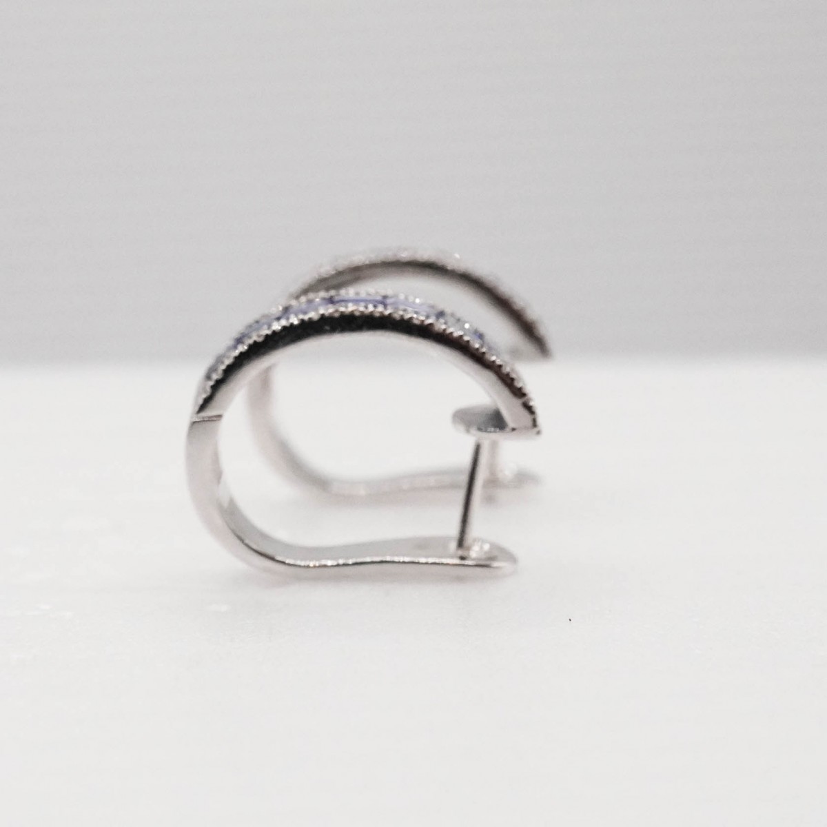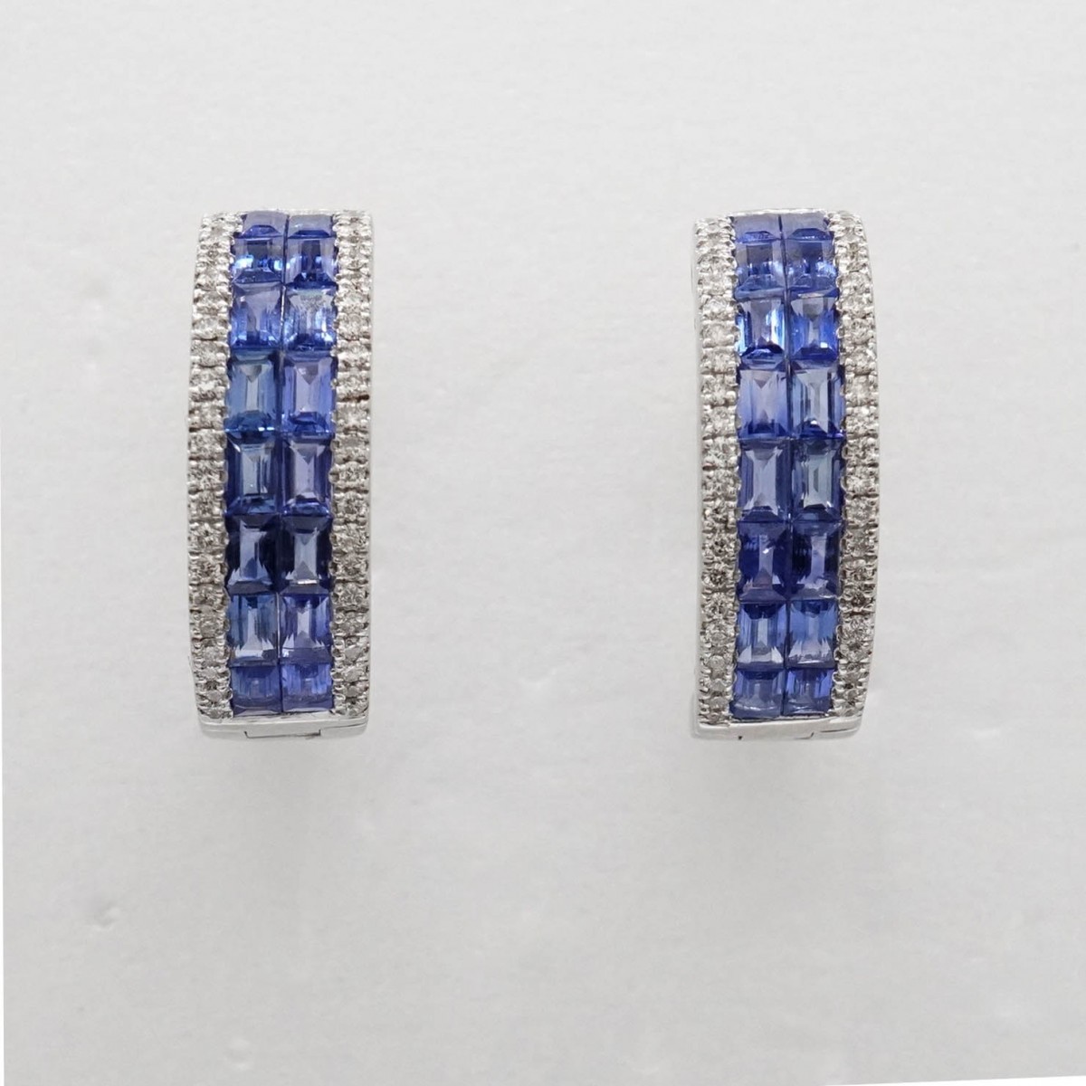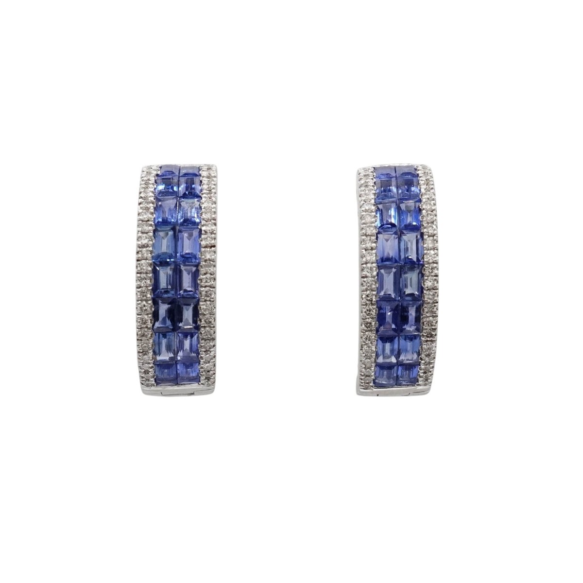Grey gold earring set in the centre with 24 baguette sapphires weighing 3.90 cts, highlighted by two lines of diamonds weighing 0.45 cts.