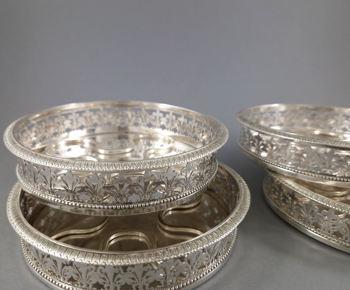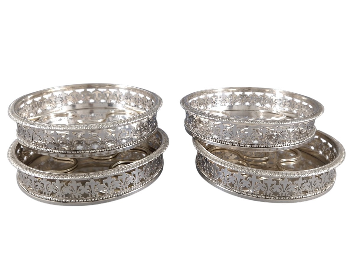 The openwork border is decorated with foliage, the base with a beaded band, and the upper part with a frieze of leaves.