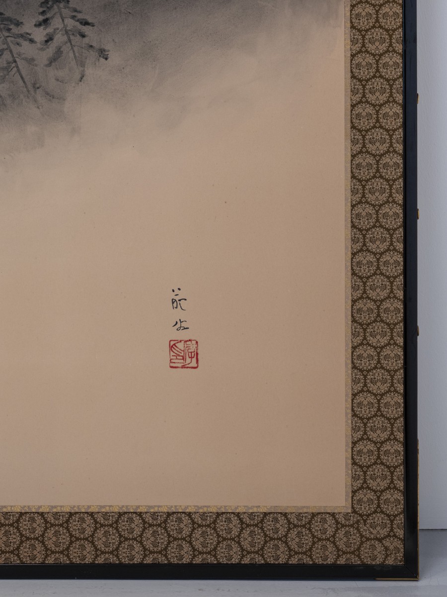 Signed and sealed by the artist in the lower right corner. The reverse is covered with decorated paper featuring a cloud motif.