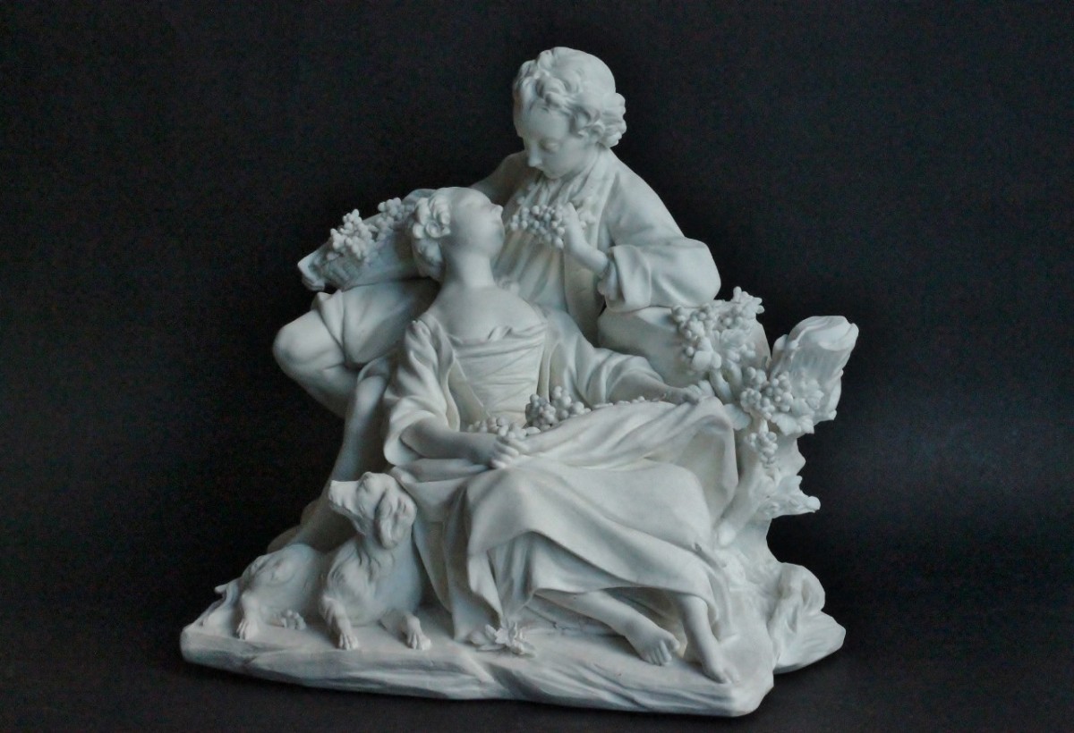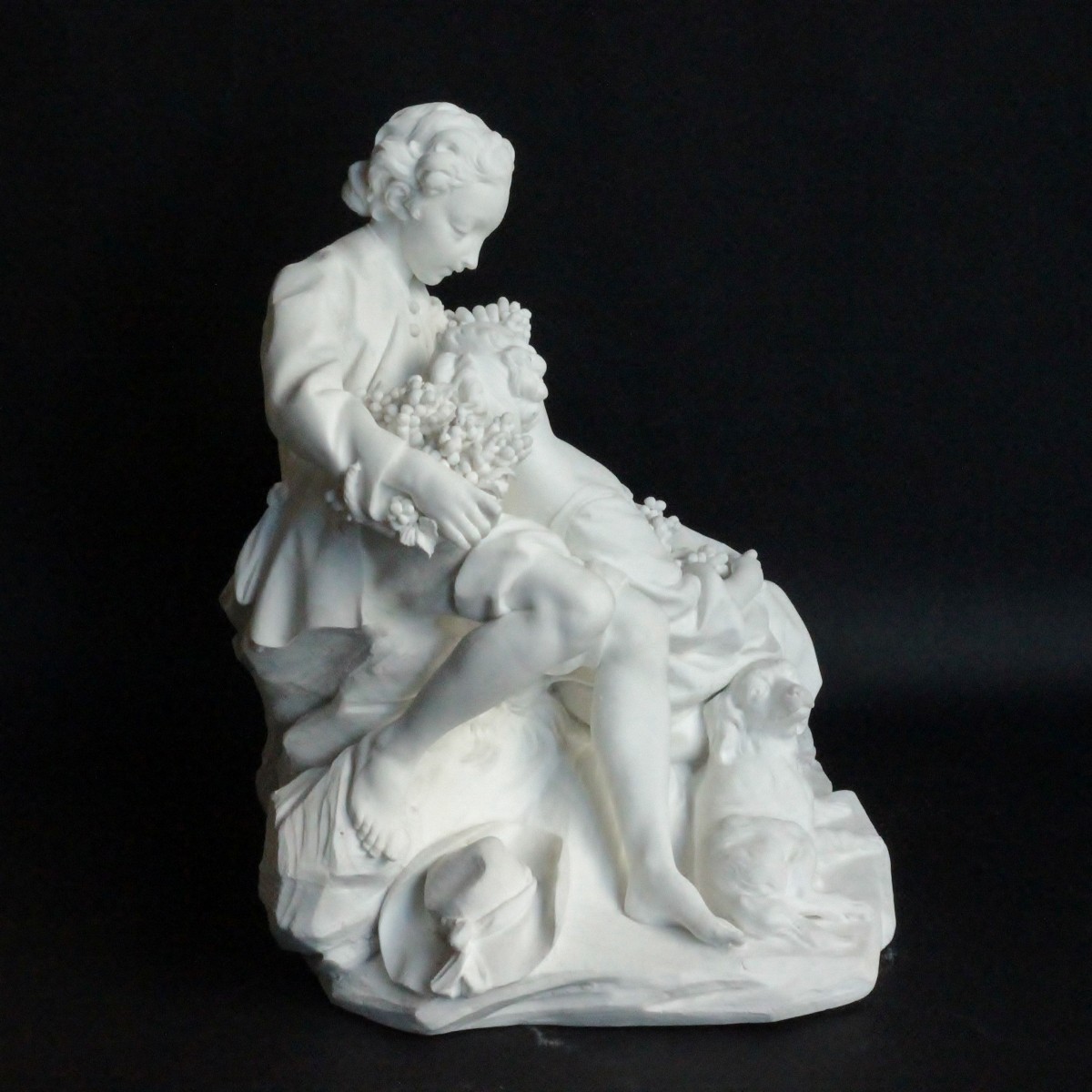 Vincennes-Sèvres porcelain biscuit group depicting grape eaters based on a model by François Boucher.