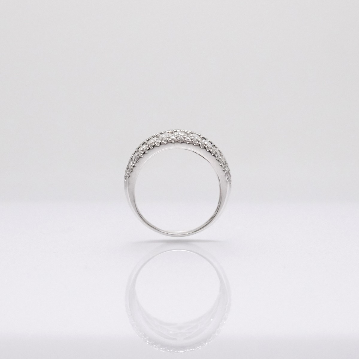 A grey gold bangle adorned with three diamond bands, highlighted by a line of diamonds weighing 2.95 carats.