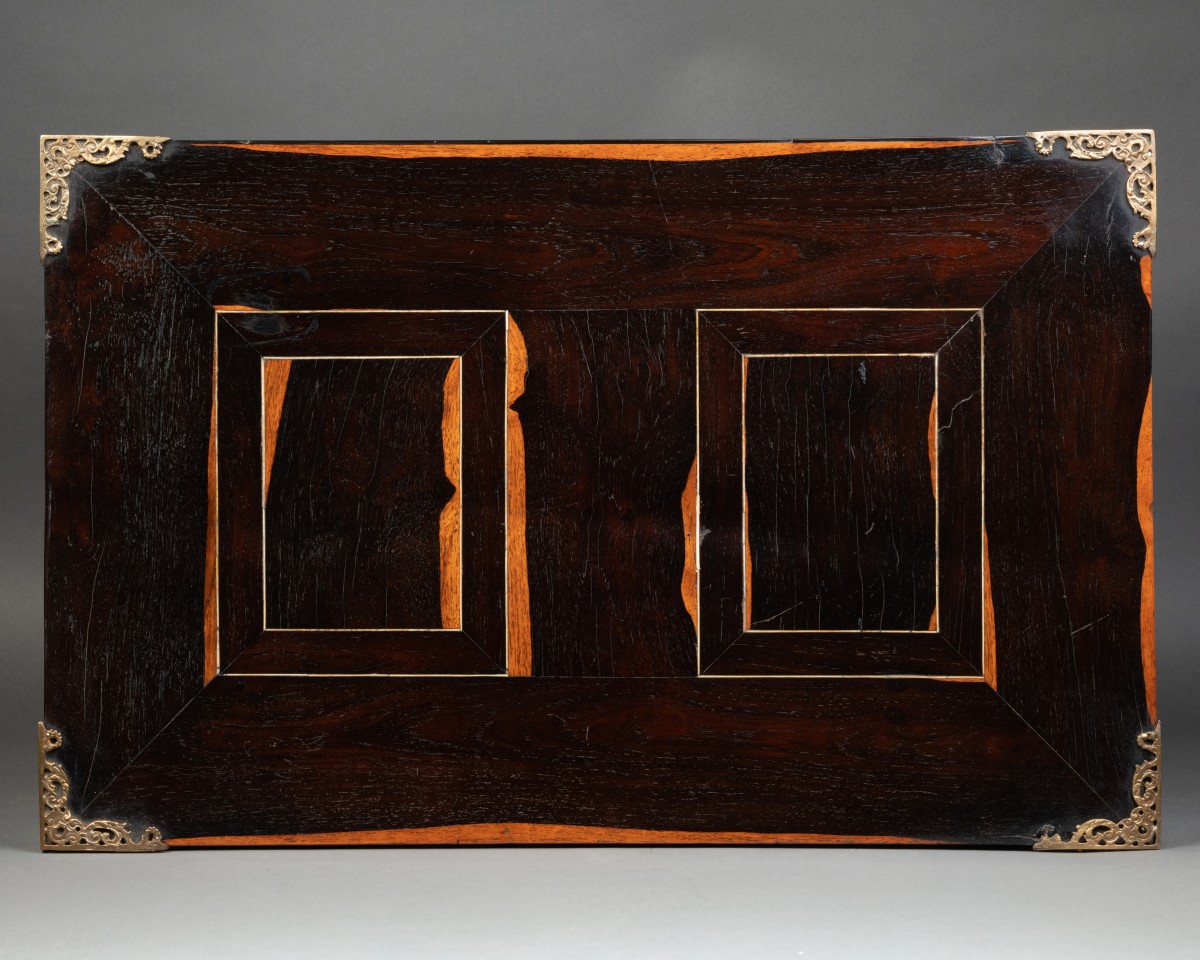 The sides and tops are in ebony veneer and inlaid with ivory fillets, all forming rectangles.
