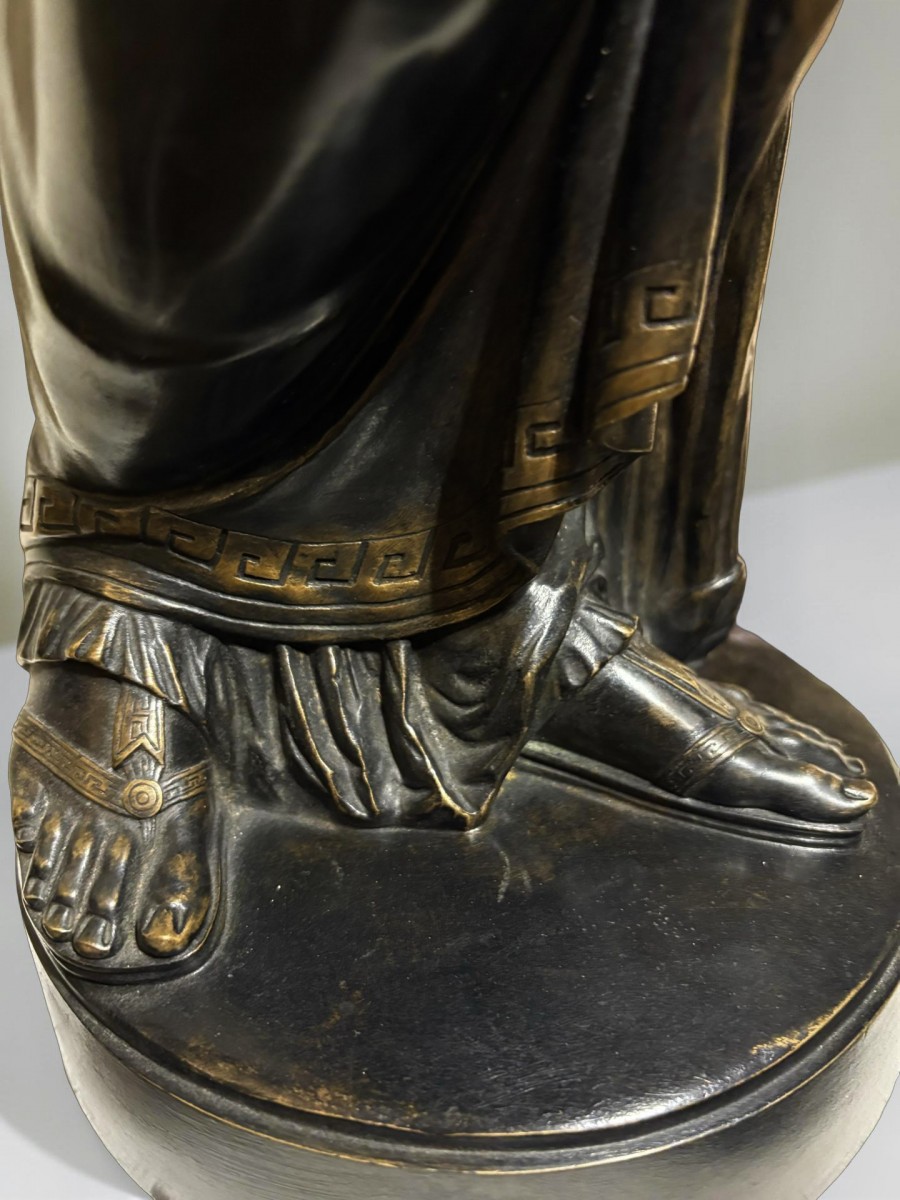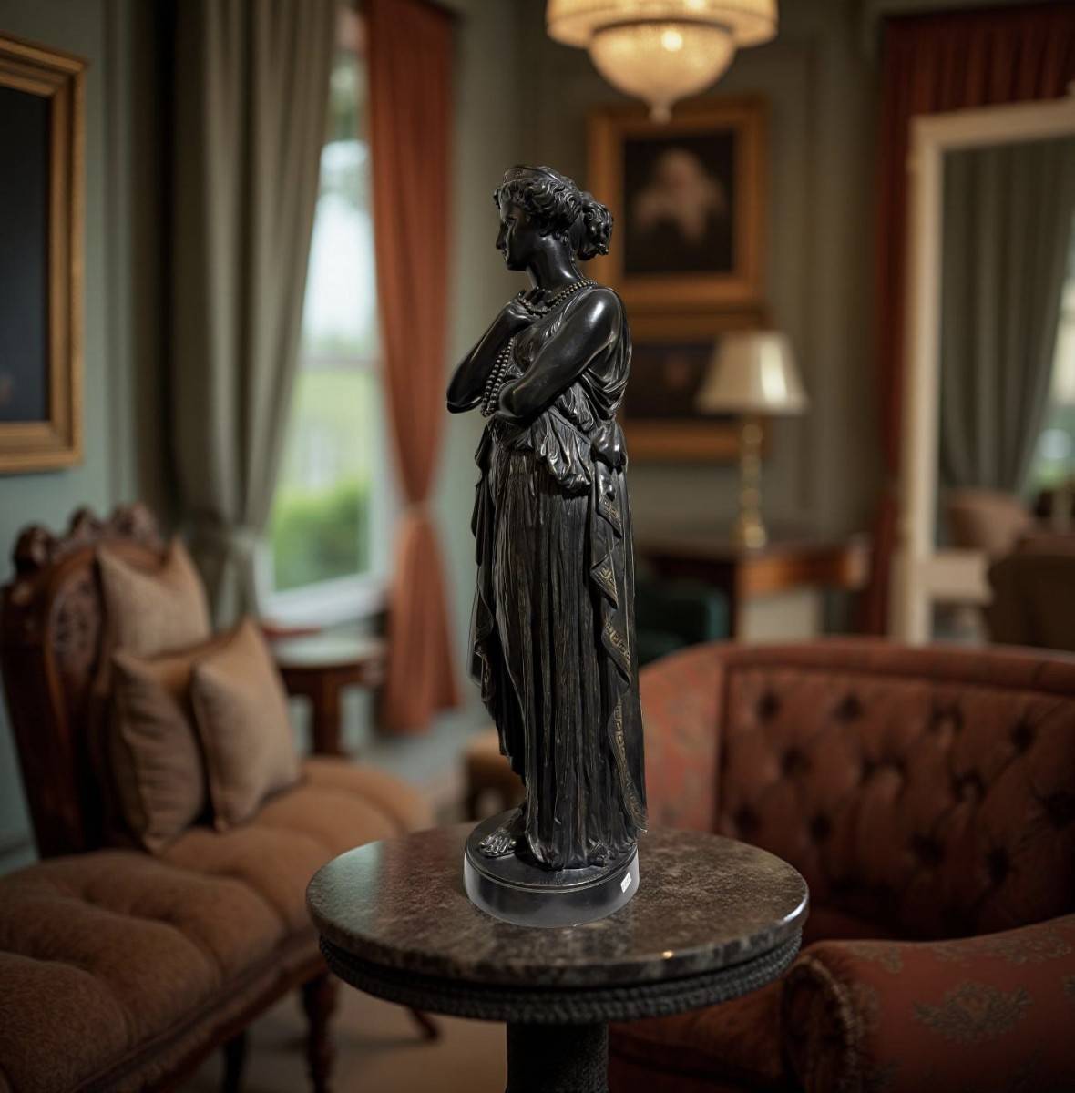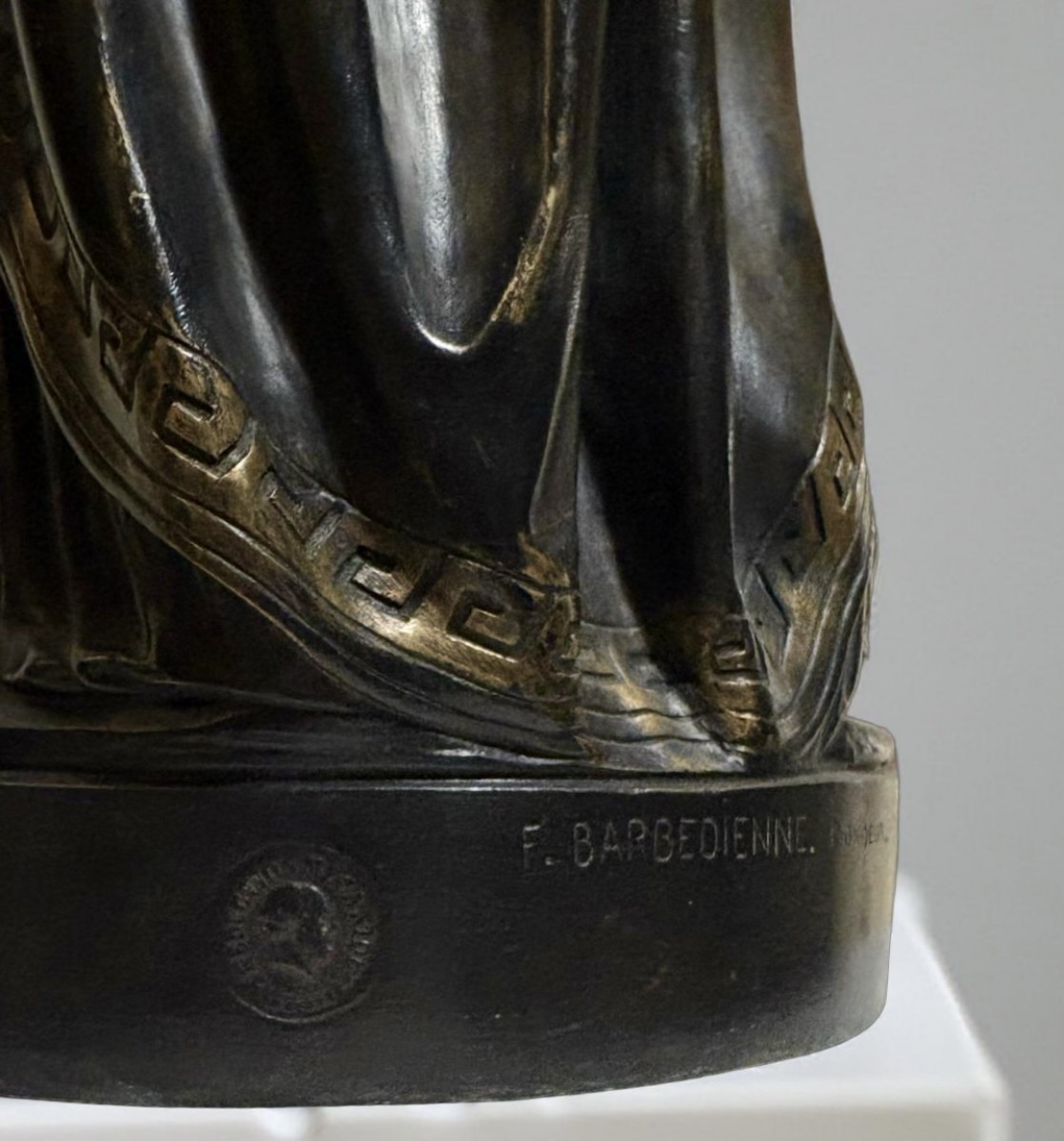 Clésinger made his debut at the Salon of Painting and Sculpture in Paris in 1843 with a Buste du vicomte Jules de Valdahon but became famous with the scandal caused at the Salon of 1847, when he presented his "Woman Stung by a Serpent", today at the Musée d'Orsay. Made from a cast of Apollonie Sabatier, the muse of Charles Baudelaire, then lover of the very rich Belgian industrialist Alfred Mosselman and a great art lover, who had placed the order, this extremely sensual sculpture caused an uproar at the Salon, making Clesinger's name resound everywhere. A controversial, passionate, furious man and sculptor, Clesinger does not accept criticism or advice: he has no students, he is an all-round artist. Strong, energetic, independent, he throws himself on the block of marble and creates his masterpieces, too bold and modern for his time. Irritated by France, he leaves Paris for Rome, where he opens an atelier that he will continue until 1864. His production is never predictable or banal: he tries his hand at busts and historical groups as well as beautiful statues of classical heroines, often played by his favorite muse, the actress Rachel Felix. He is not a sculptor of large numbers, working alone his works are often unique and, when replicated by himself, they always remain in limited numbers. Even the bronze production, published exclusively by Ferdinand Barbedienne, is limited.