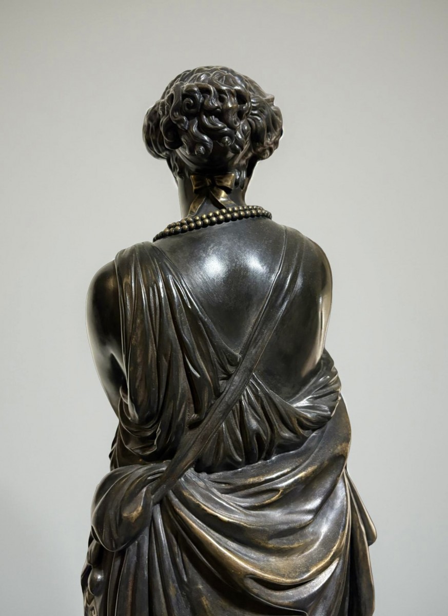 This is the case of the beautiful Helen of Troy, which takes shape in the Roman atelier, imagined as a Roman matron, tall, robust, superb, made in a brown patina bronze illuminated by golden highlights.