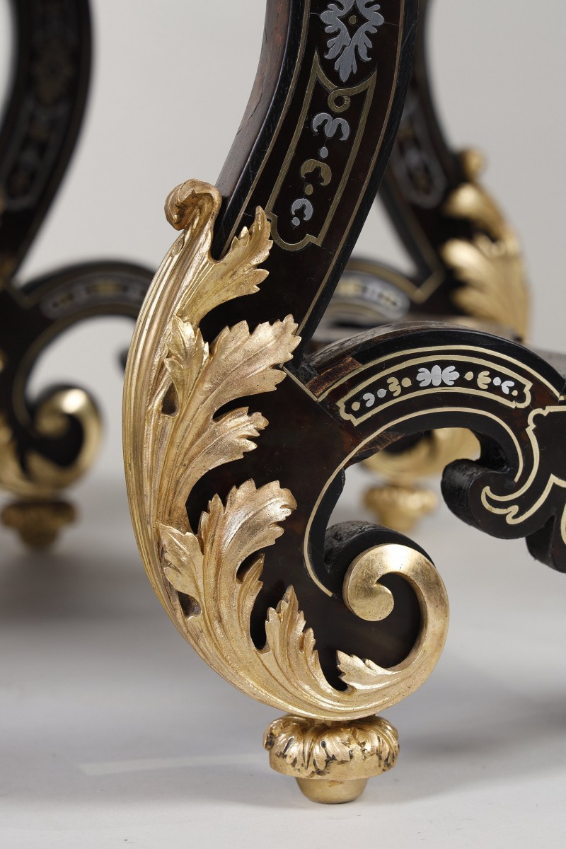 Apart from these three examples, attributed respectively to André Charles Boulle or Oppenordt, all other pieces have much more classical bases.